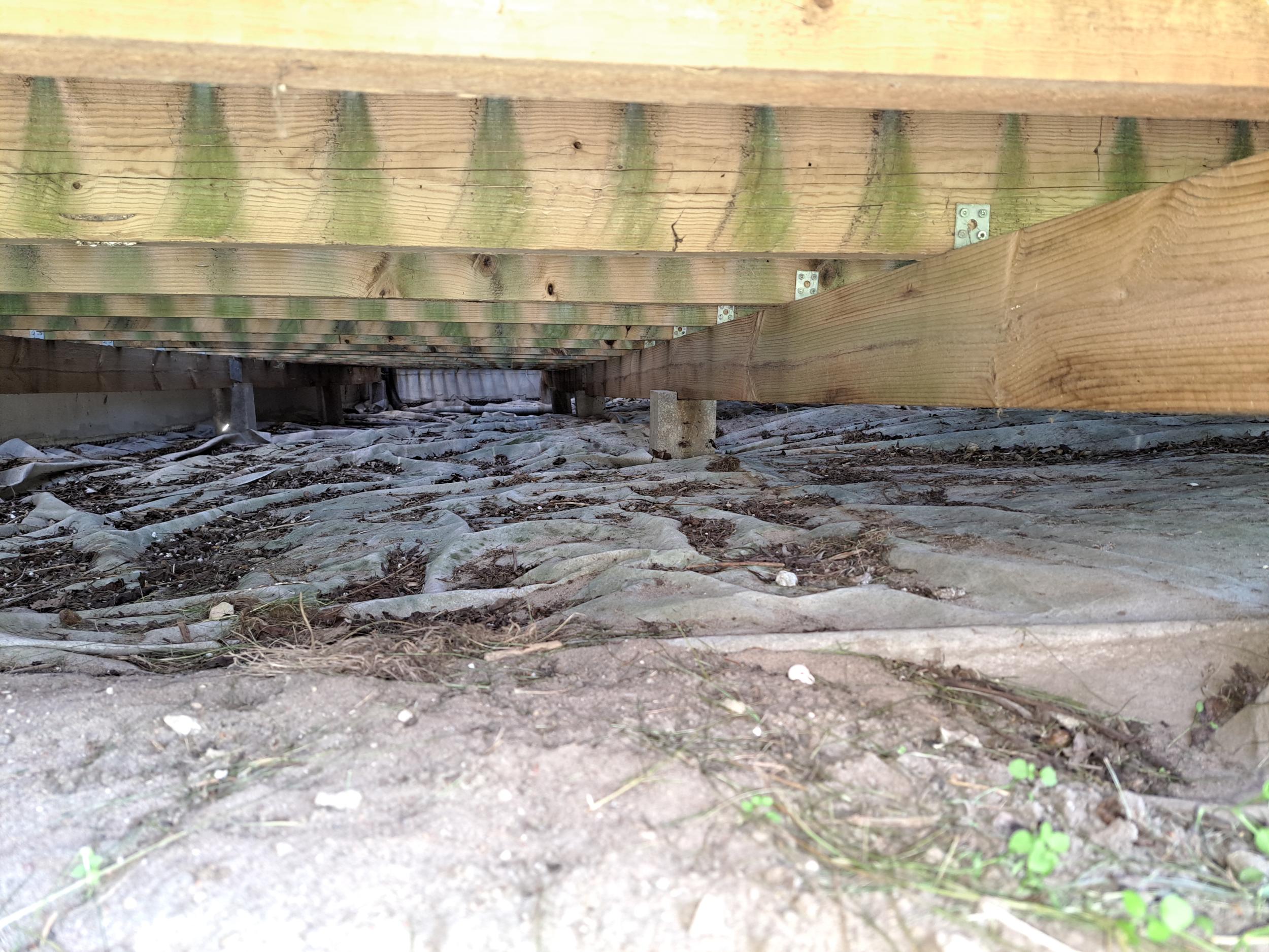 Pakkumine ilma materjalideta. Põhjaks on killustik savisel pinnasel. Terrassi toetavad plokid. Enamus materjali saab taaskasutada (vajalik üle immutamine). Üldiselt taastan karkassi. Lisaksin tugiposte (betoonposte). Lgp. Taivo |