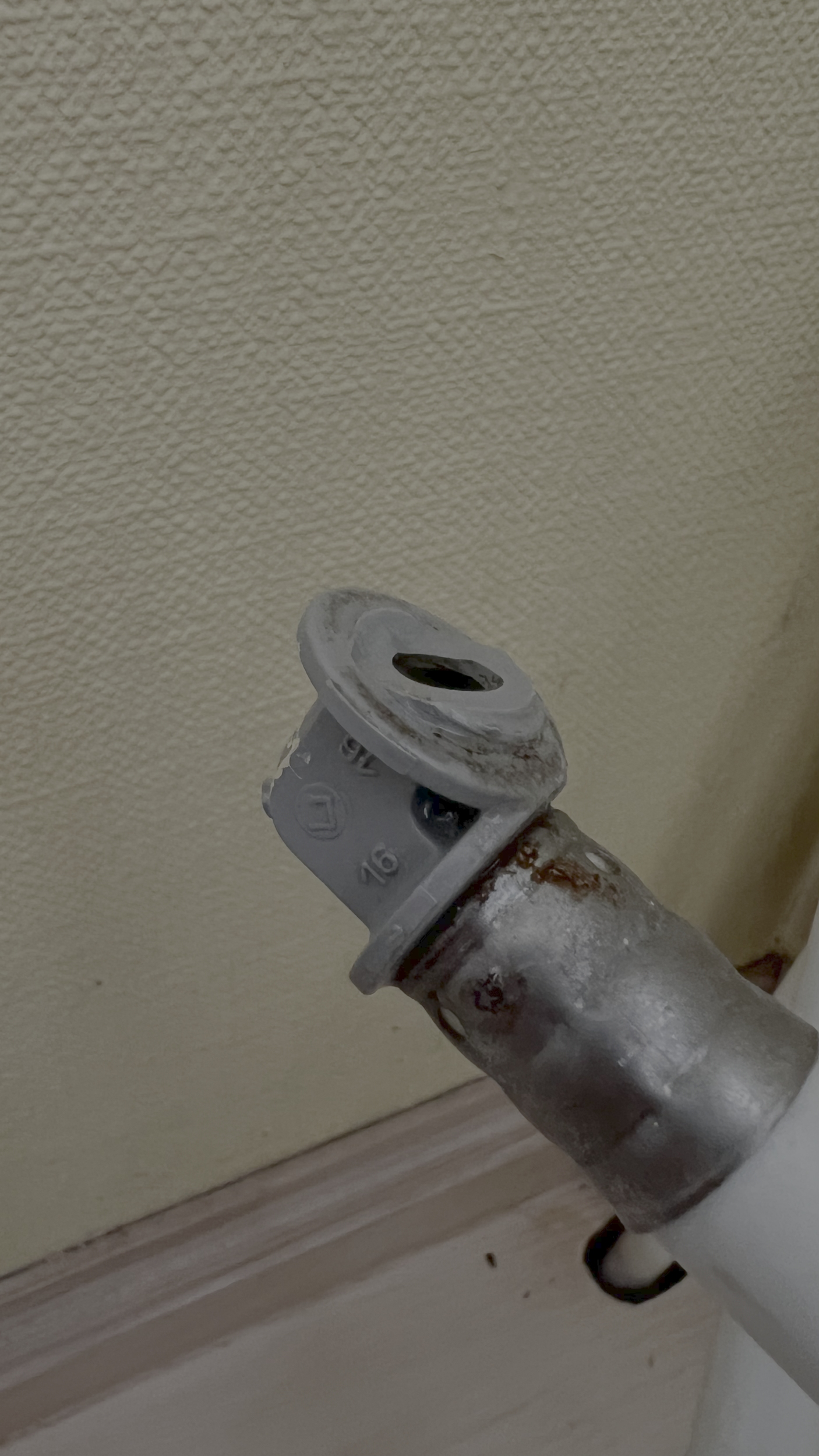 Gaasikatlaga seotud küttetorustiku ühe toru liidestuskoht murdus. Toru asub kohe katla kõrval (all).