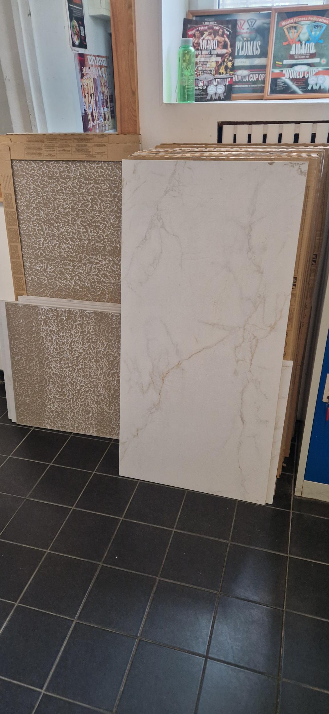 Vaja siis plaatida vanade plaatide peale 60x120cm plaatidega ( püstis = 2 plaati= valmis kõrguse poolest) enne plaatimist panna hydro ja vajadusel nakkamise jaoks kiht vanade plaatide peale. Seinad kokku 45 m2 põrandad 11m2. Kui pakud nii paku ka tarneaega kuna tööga suht kiire.