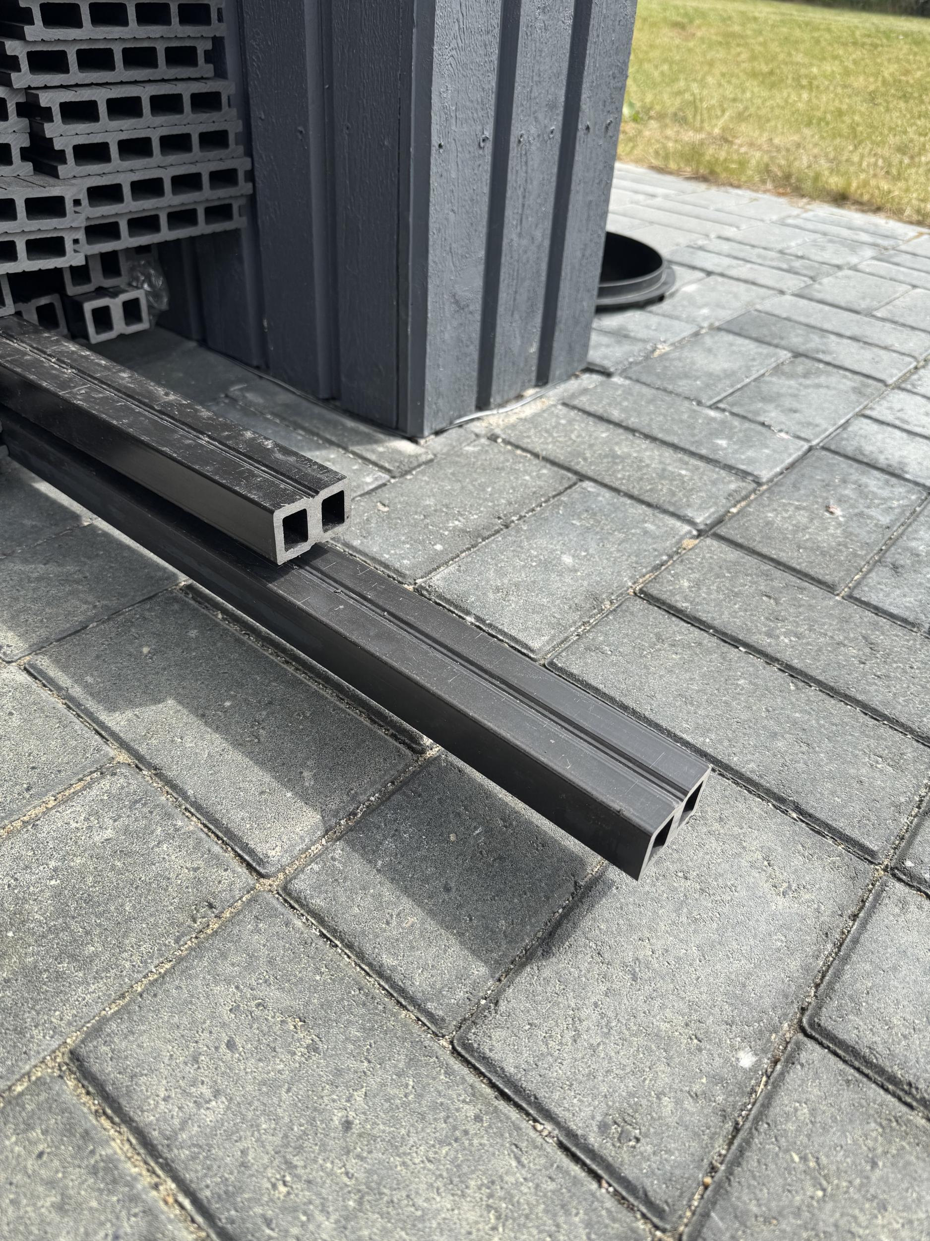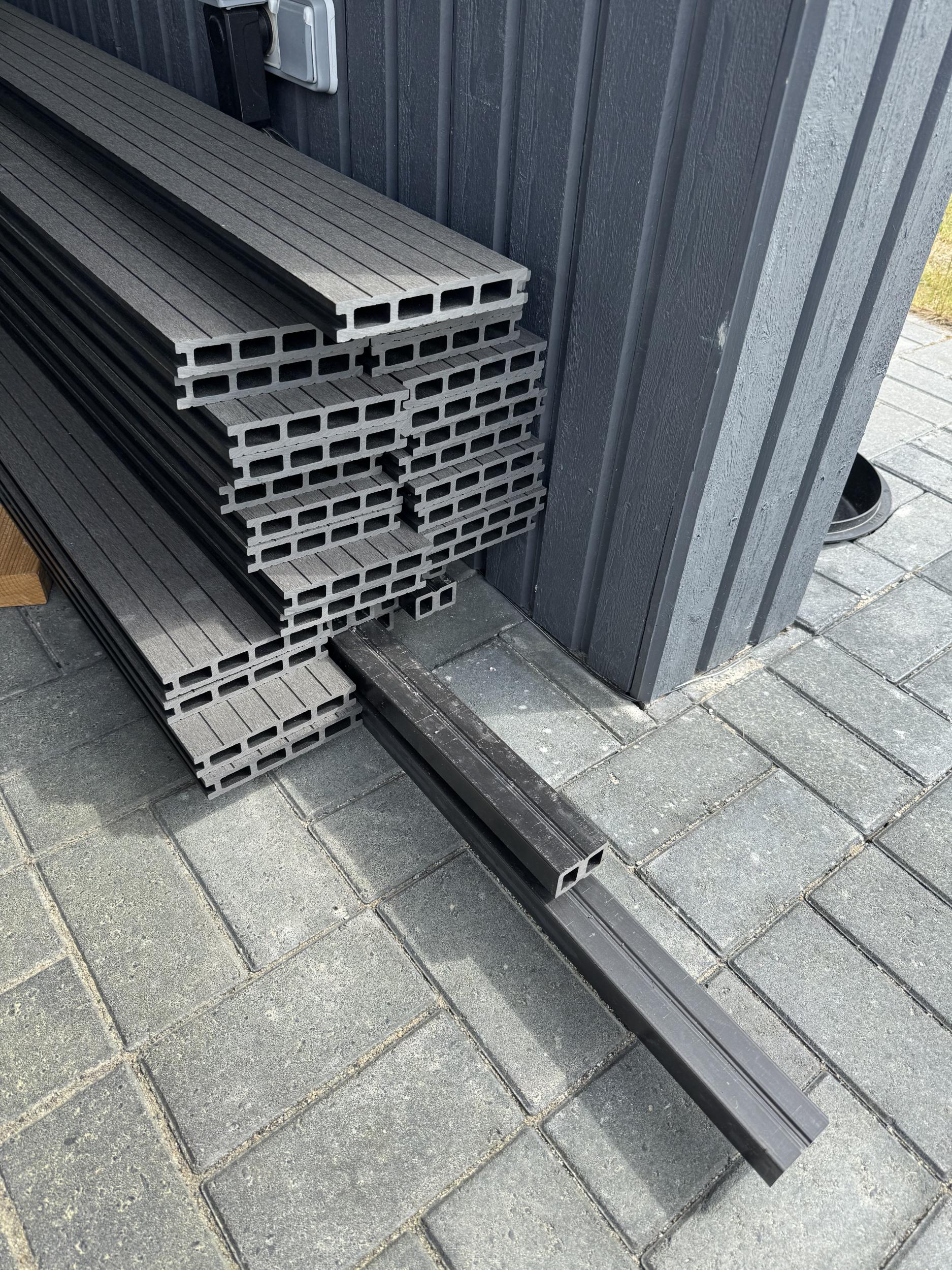 Komposiit terassilaud, aluslatt, kruuvid, kinnitusklambrid on olemas.