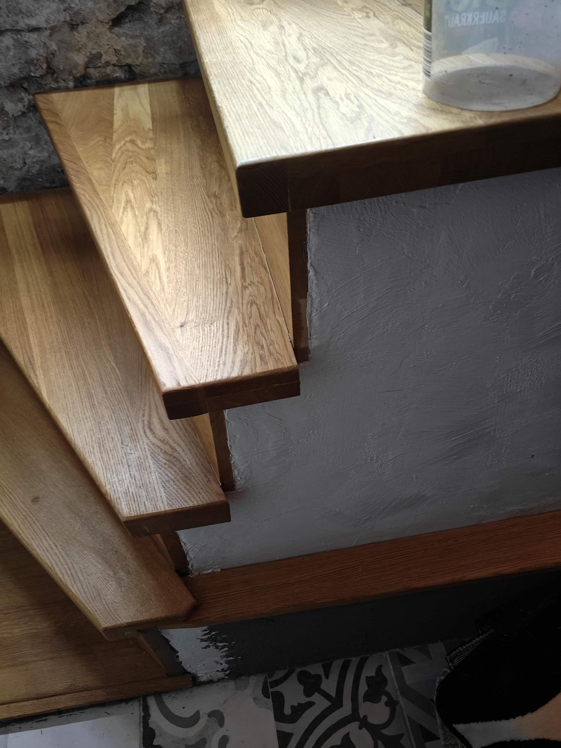 Vaja restaureerida trepp. Võtta ära laminaat ning asemele tamme liimpuidust uued astmed ning küljed. Uuendada piirded ning paigaldada käsipuu(sarnade näidisega)