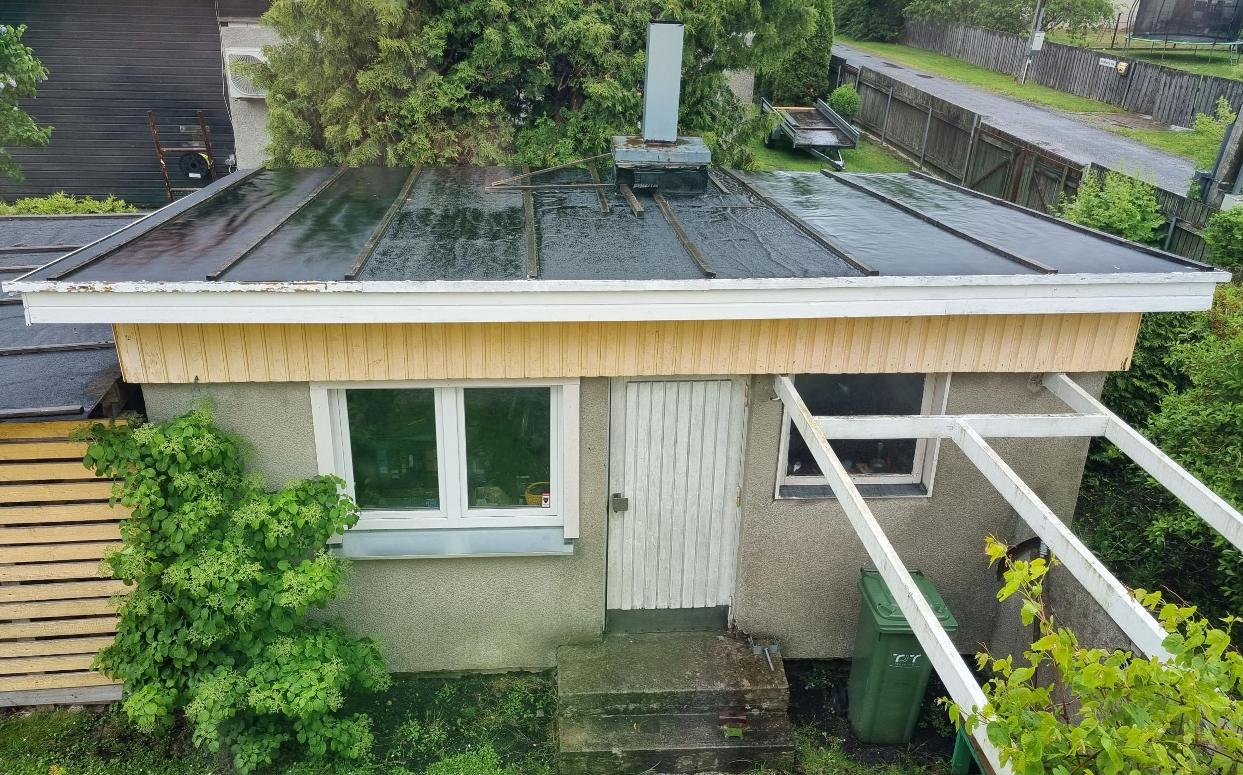 Korstna ümbruse remondile tuleks erilist tähelepanu pöörata (läbijooksud). Võibolla tuleb seal vahetada talad ja panna uus tihe laudis. Ülejäänud katus tundub olevat korras ja piisavalt tugev.