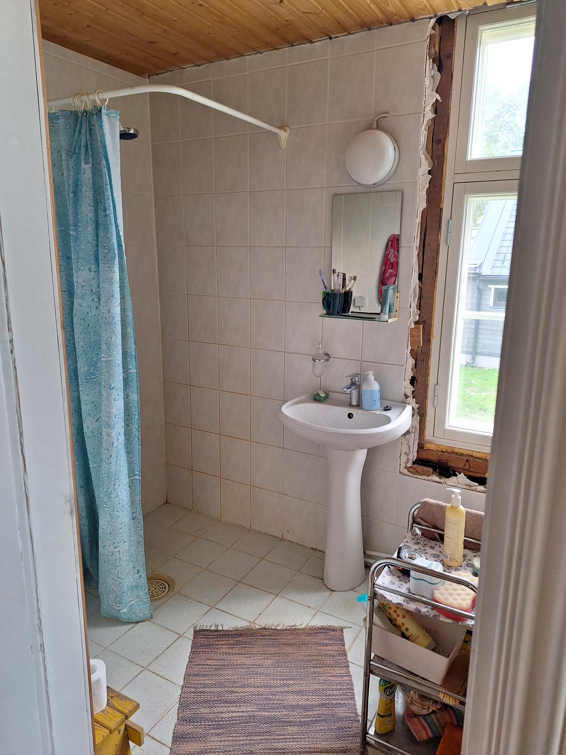 Plaani koostamine, vaheseina ja kogu sisu väljalõhkumine,vesipõrandakütte paigaldus,seina ja lae ehitus ja osaline plaatimine. Põrand 8m2,,seinad25m2