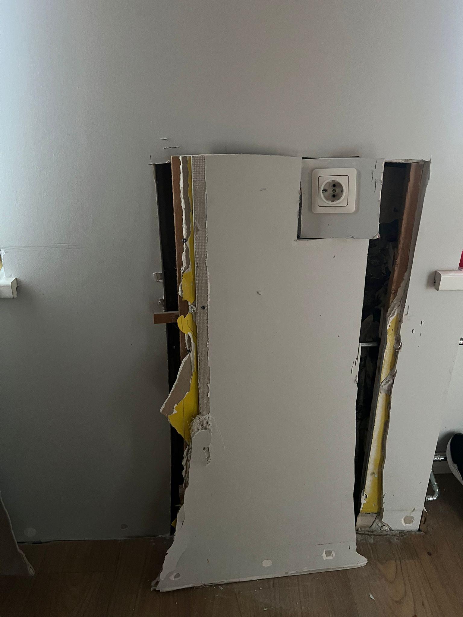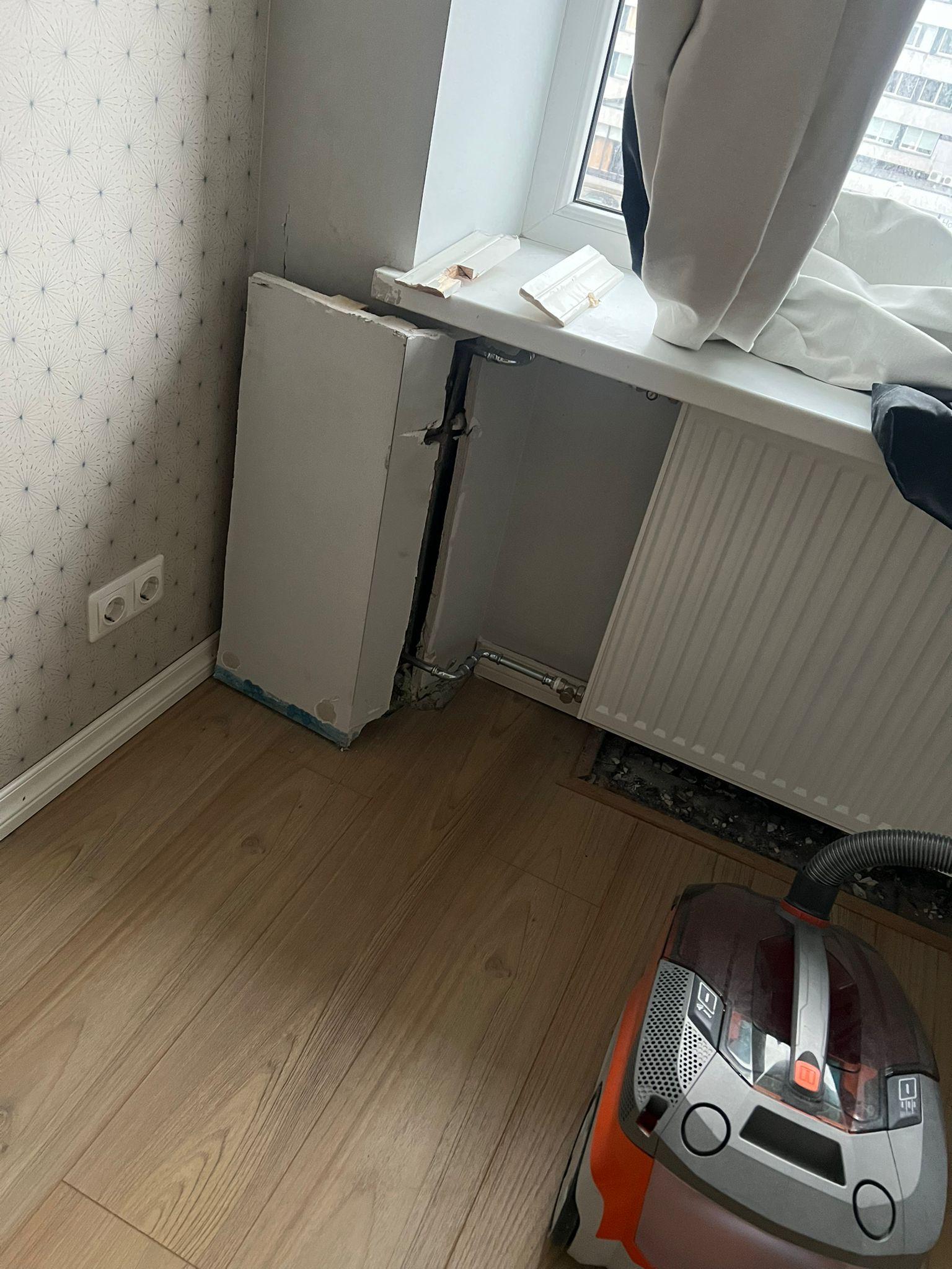 Vaja oleks abi seinte viimistluse taastamisel kahes kohas (nagu piltidelt näha). Seinad said kahjustada kortermaja küttesüsteemi töödega seoses.