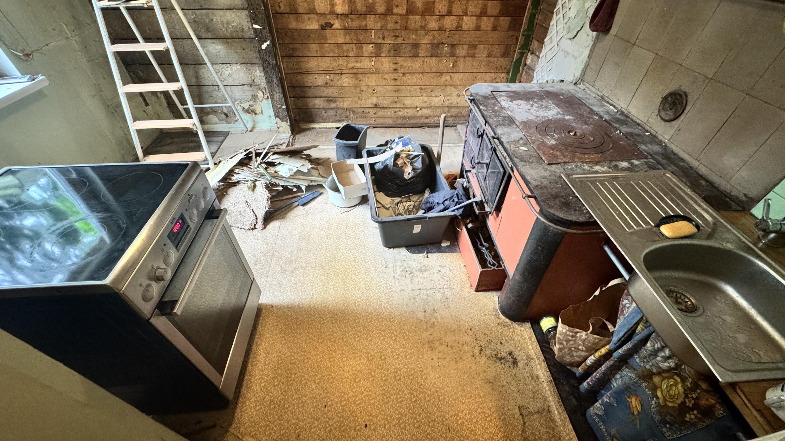 Köök puitmajas, millele on nõukogude ajal kivikarkass ümber pandud. Vana on osaliselt lammutatud, osa veel tuleb lammutada (võib-olla jõuan ise, võib olla mitte).