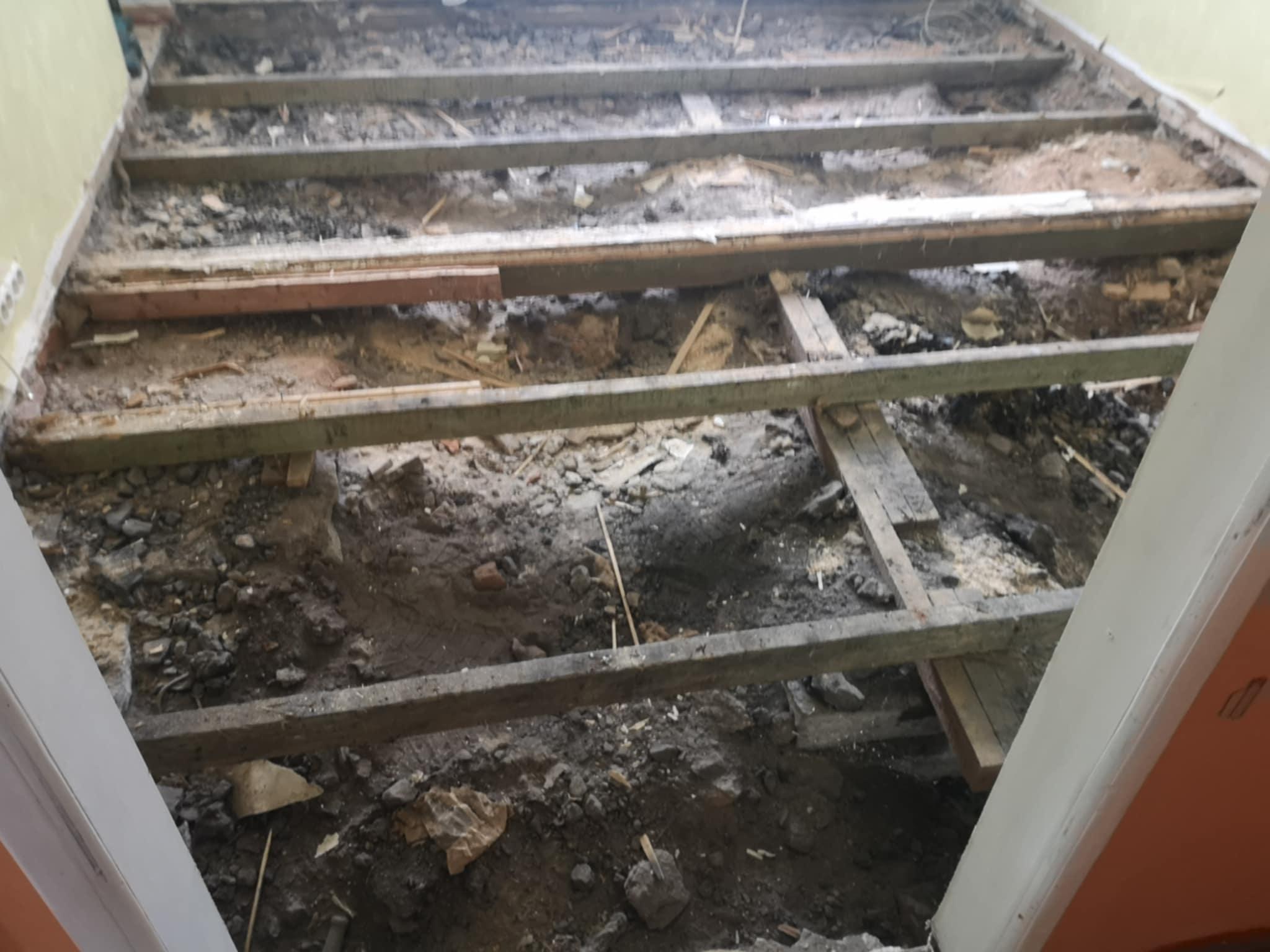 Põrandad on alusmaterjalini lahti võetud, vaja loodida ja ehitada aluskarkass, soojustada. Katta lõpuks parketiga , köök ja esik plaatida
