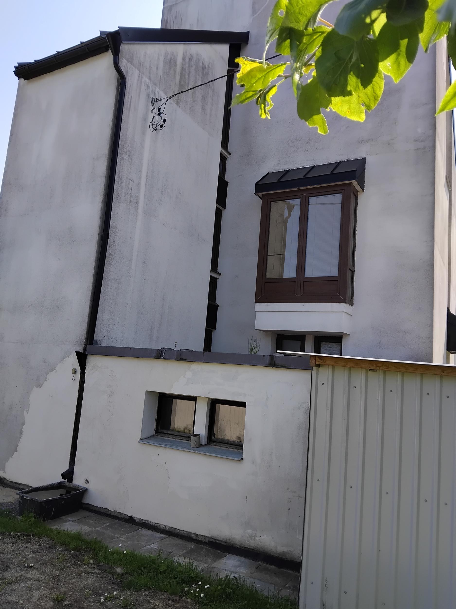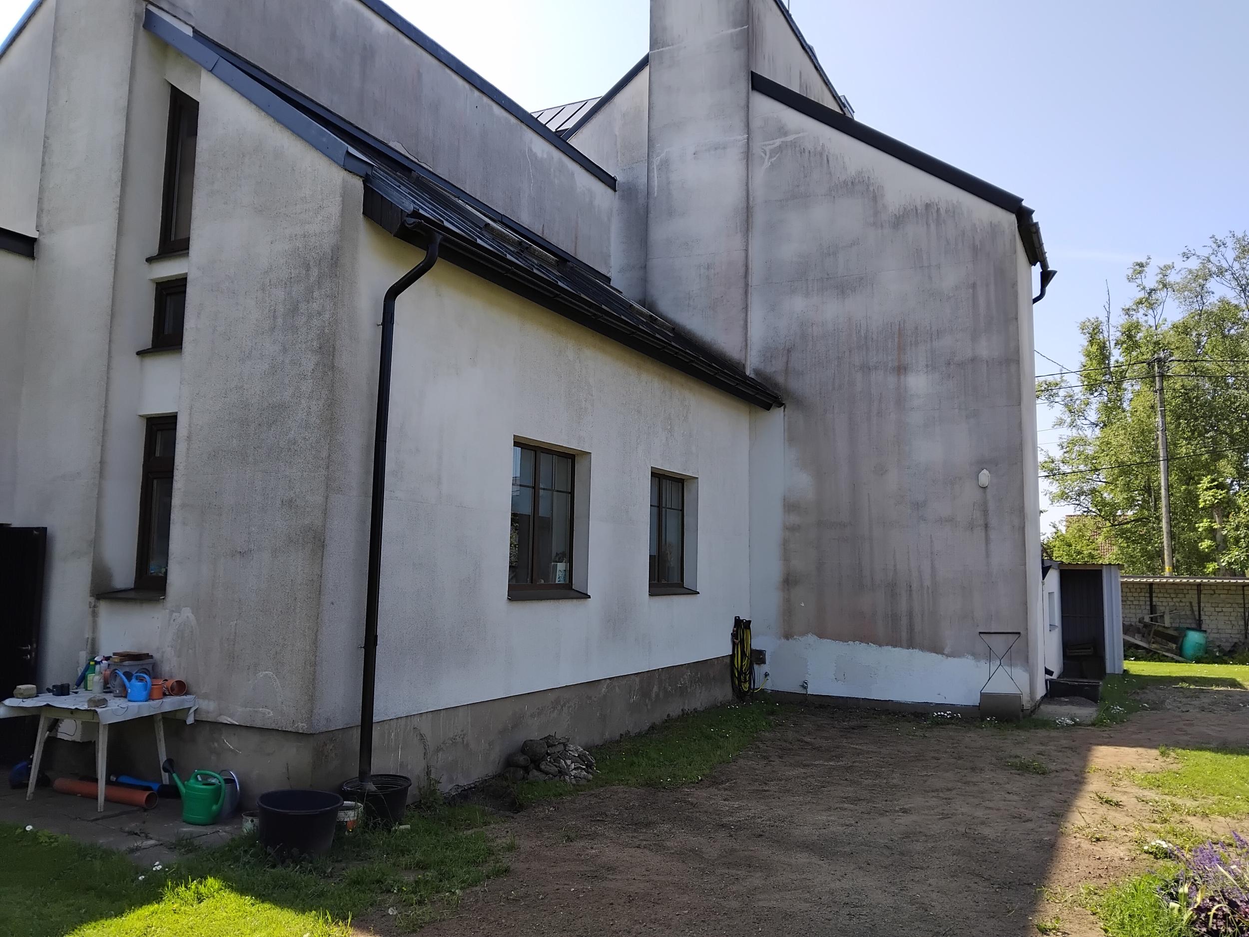 Eramaja eelnevalt värvitud ja struktuurkrohvitud fassaadi pesu, krohvipragude parandused ja värvimine. Mittevärvitavate detailide kinni katmine.