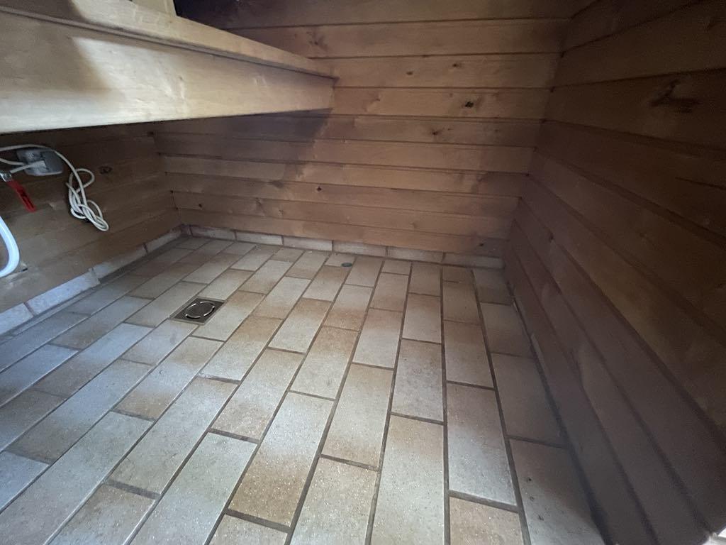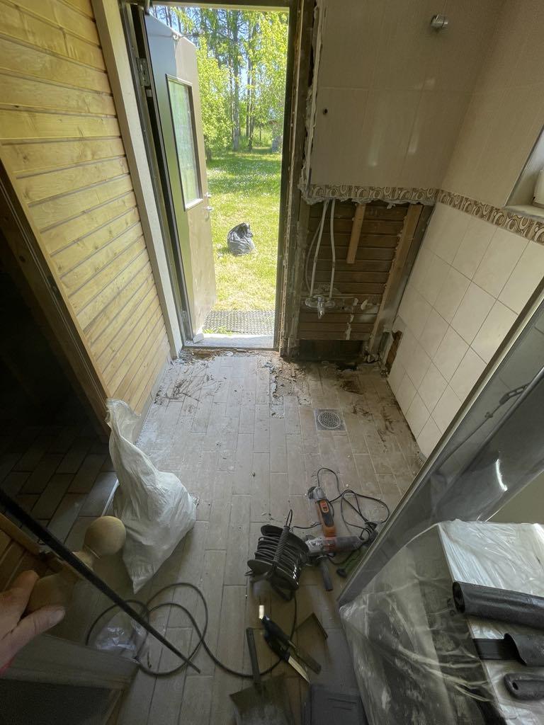 Leiliruumi põrand ja sein (vt pilti) vaja 50cm laiuselt lahti lammutada. Põranda ja seina materjalid samad mis dushiruumis.