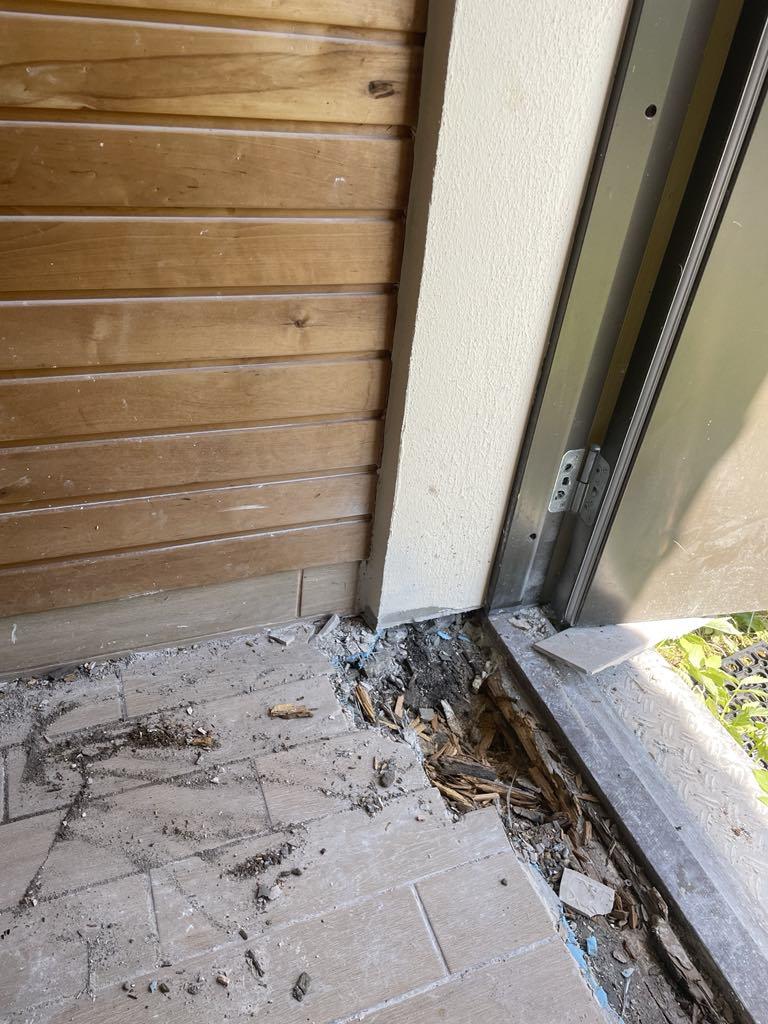 Välisukse all olev tala (vt pilti) on vaja kätte saada. Hetkel on arvata, et tala kahjustus läheb veel 1,5m vasakule poole - leiliruumi.