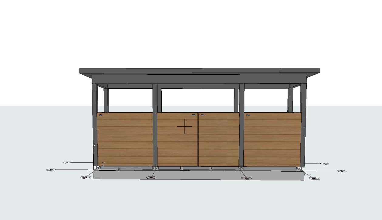 Palume KÜ prügikonteinerite ala lahendamiseks 2 hinnapakkumist ainult ehitusele (materjalid on olemas): 1) prügimaja joonisel alusel 2) individuaalsed konteinerikastid igale konteinerile fotoga illustreeritud näite järgi. Kokku 5 konteinerit: 140L, 2x 240L, 660L, 770L
