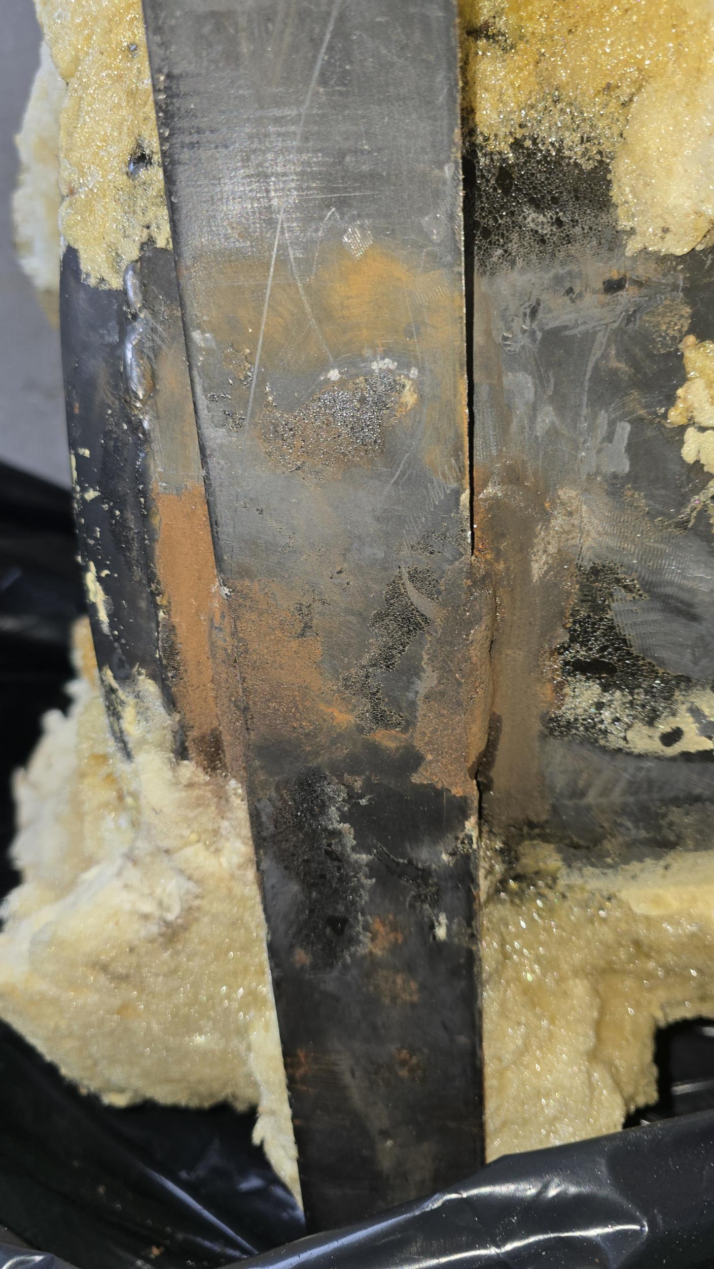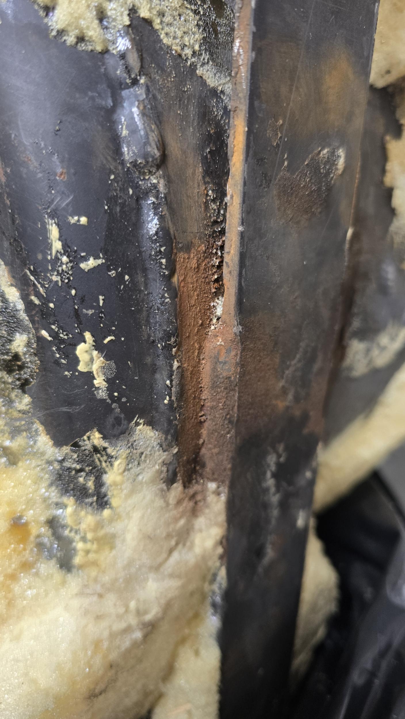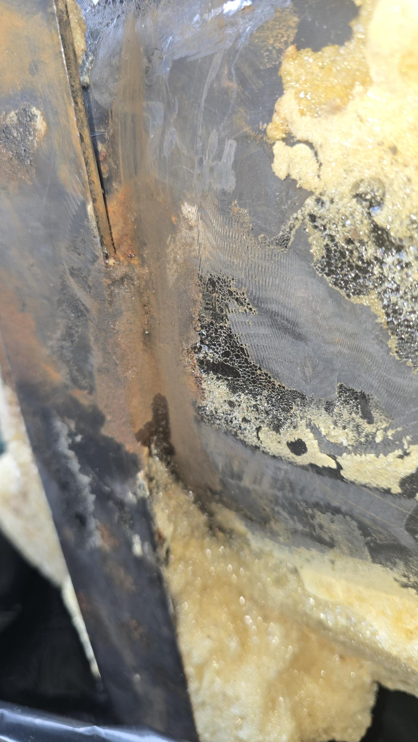 Saunaboiler lekib, leke tuleb kinni keevitada. Boiler on valmistatud 3 mm terasplekist. Leke on fotol näidatud piirkonnas, kuskil tugijala ja paagi vahel. On võimalik, et keevisõmbluse juurest on metall läbi roostetanud. Tugijulg on osaliselt kaetud ehitusvahuga, töö teostamiseks on vaja veidi vahtu eemaldada.