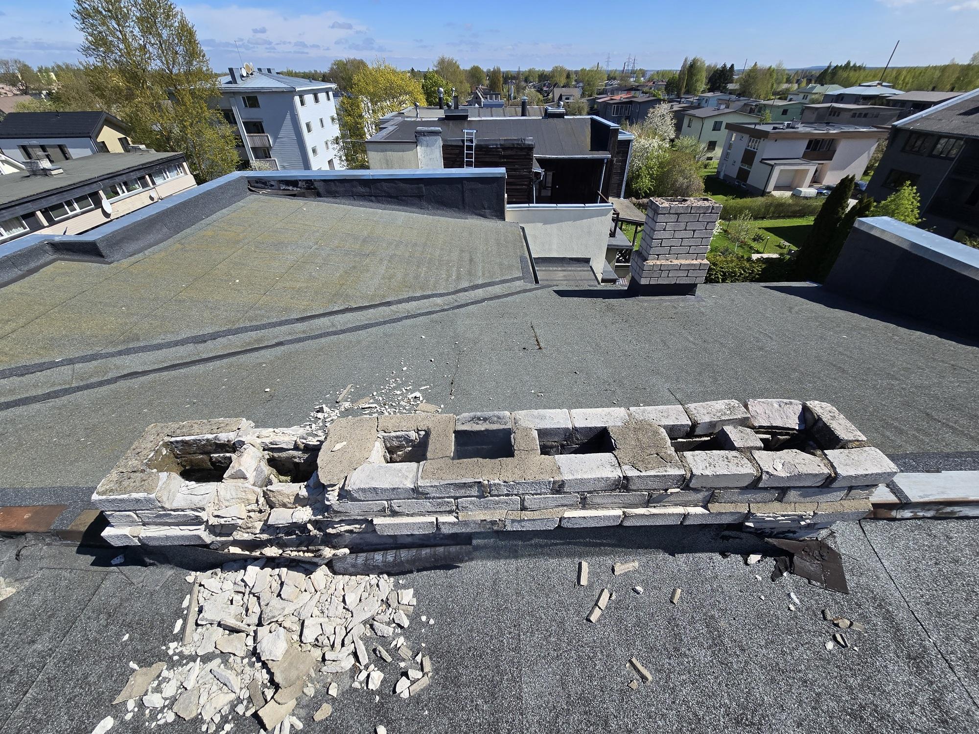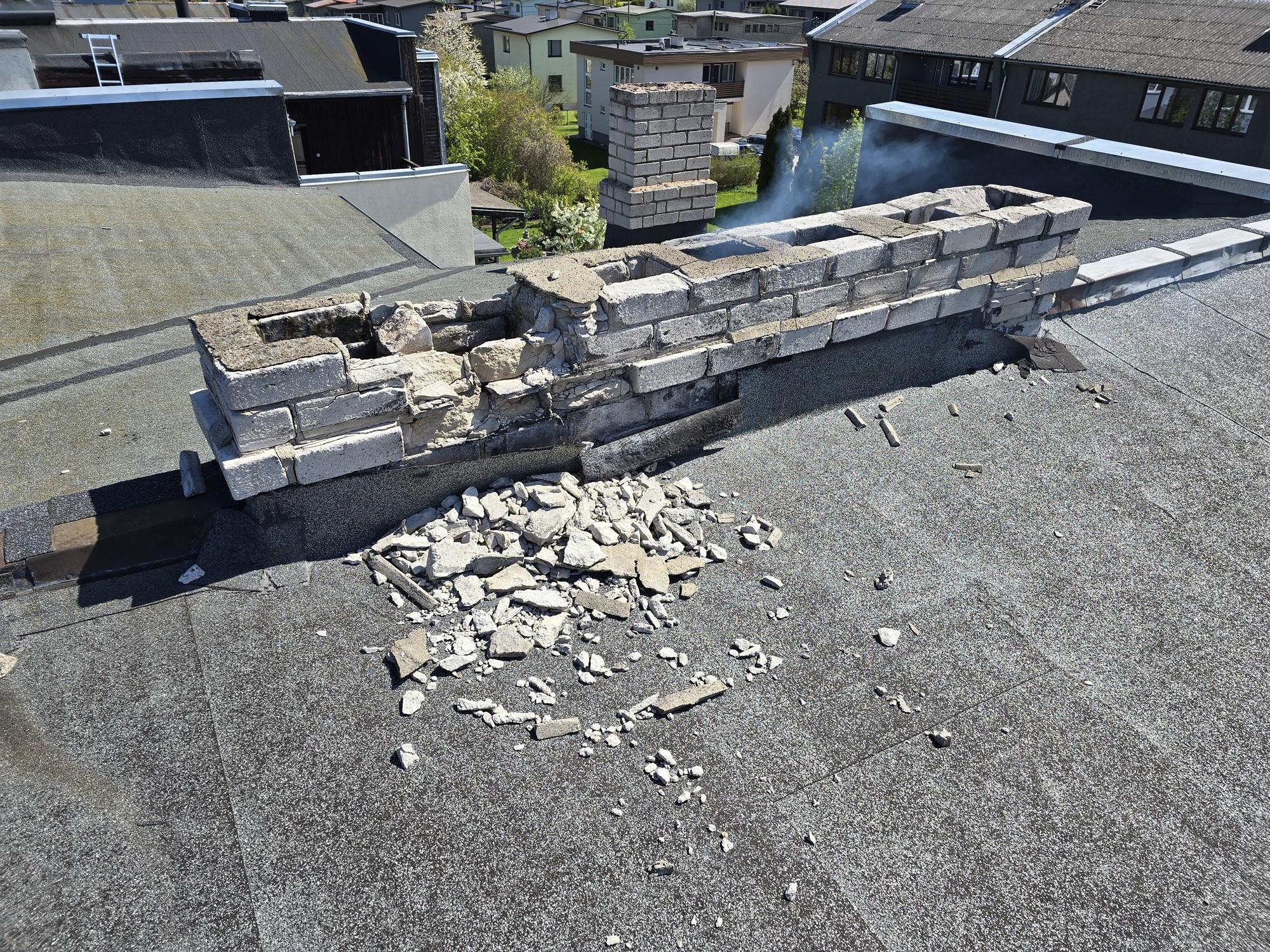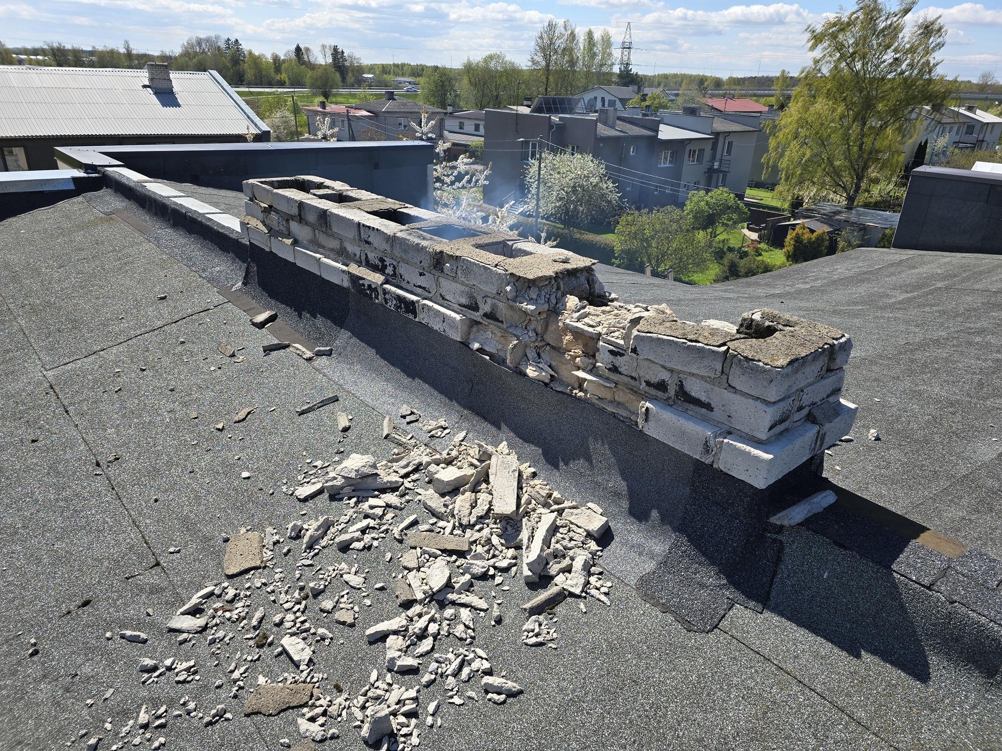 2) Uue nõutekohase korstnapitsi ehitus (värvus võiks olla hele/valge) koos kaasnevate töödega + korstnamüts/korstnaplekk. Korstnapitsi mõõdud ca 3.1m x 40cm (laiemast kohast 46cm).