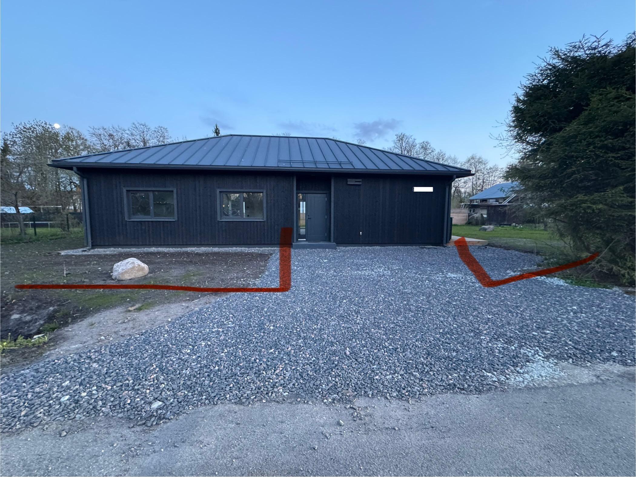 Kuna tundub, et autovärava paigaldamiseks jääb parkimiskoht liiga napiks (majast aiani ca 5 meetrit), siis oleme mõelnud lahendusele, kus mõlemale poole tuleb L-kujuline aed ehk parkimisala jääks aiast väljapoole. Lisatud pildil on punasega tähistatud jooned, mis näitavad soovitud aia asukohta.
