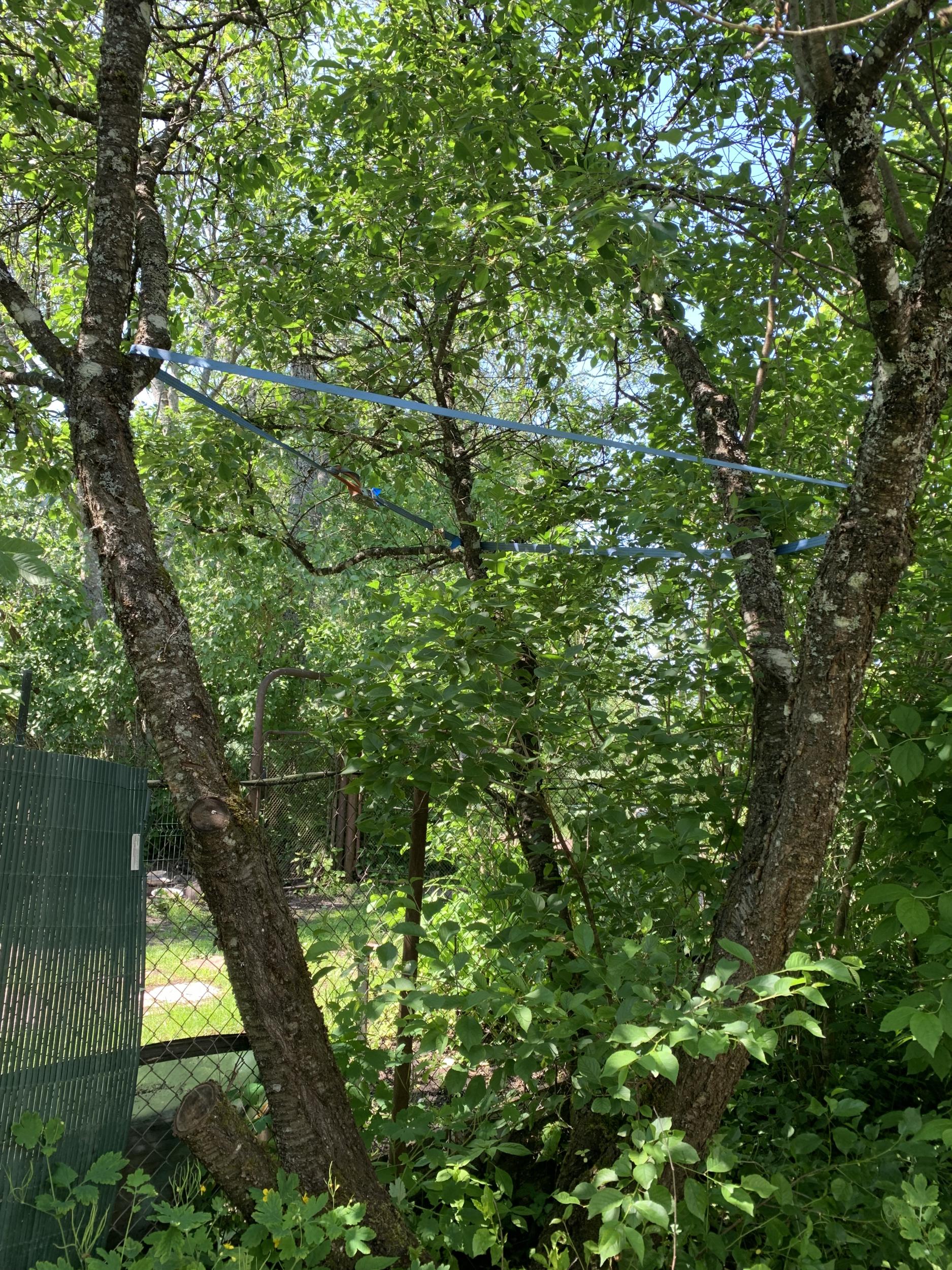 Oleks vaja maha võtta 2 kirsipuud ja üks ploomipuu, kirsipuu on mitmeharuline. Tüved võivad maha jääda, aga oksad oleks vaja kas utiliseerida või kui saab kaasa võtta oksapurustaja ja need purustada, et multši saada.
