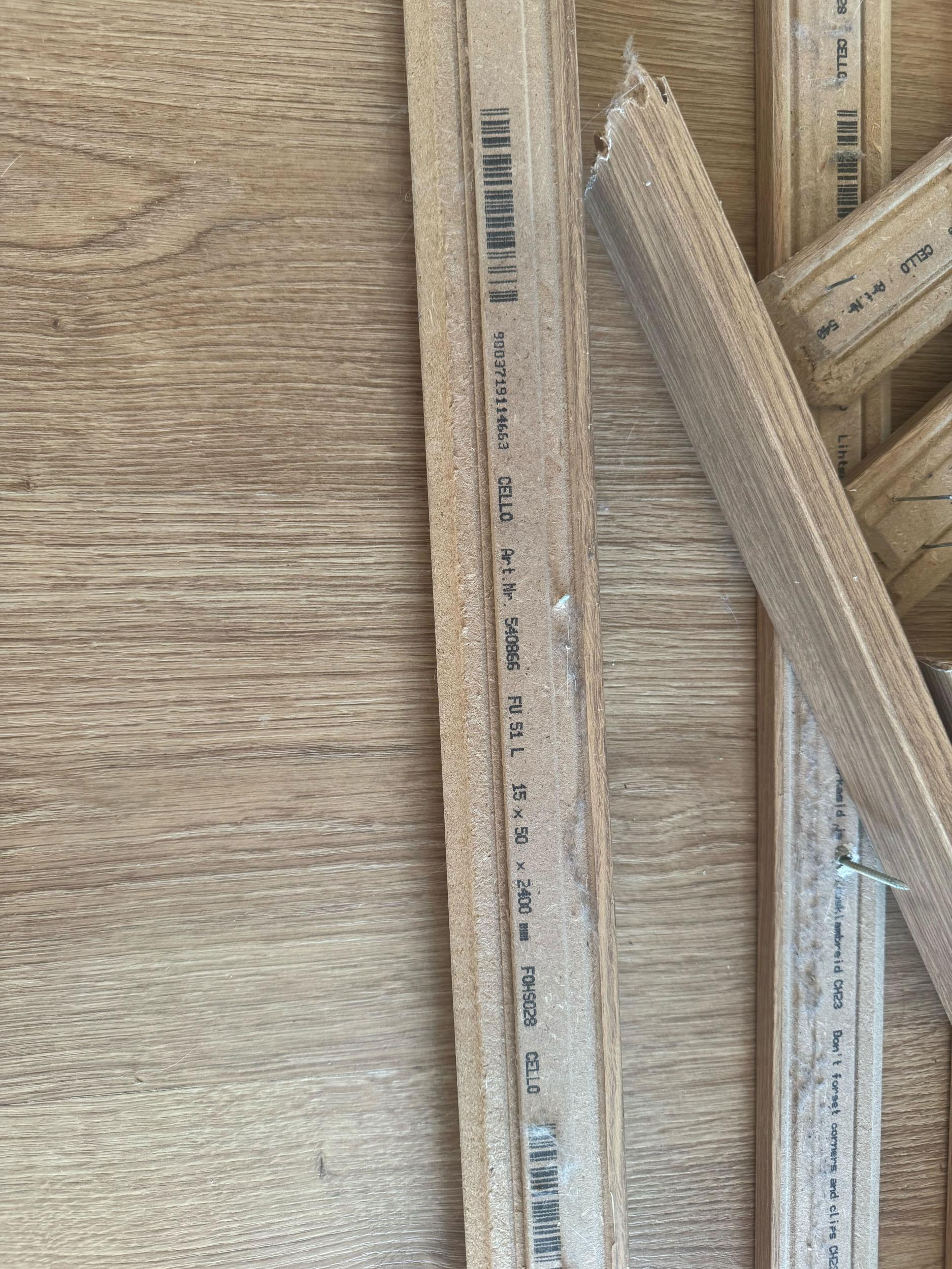 Planeeritav uute liistude paigaldusmaht on kokku ca 11,8 meetrit (mõõdetuna eemaldatud vanade liistude kogupikkuse järgi). Mõned keerukamatesse kohtadesse kinnitatud liistud on veel alles – kui nende eemaldamine osutub võimalikuks paigaldaja abiga, siis töömaht võib vähesel määral suureneda vastavas ulatuses. Plaanin samasugused liistud ette osta K-rautast – tegemist on pruunide puidust liistudega, mõõdus 240 cm x 5 cm, lingil toodud toote järgi: https://www.k-rauta.ee/p/porandaliist-240-cm-x-5-cm-pruun/1wxh?mtd=search-popup&pos=autocoplete&src=lupasearch
