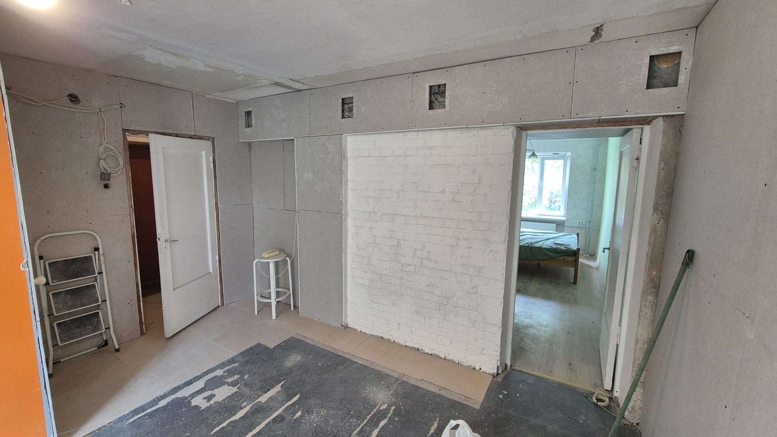 * Telliskiviseinad on kaetud pahtliga (tehtud kindaga, on taotluslikult krobeline) ja vajavad ainult värvimist (toon täpsustub), maht 6m2.
