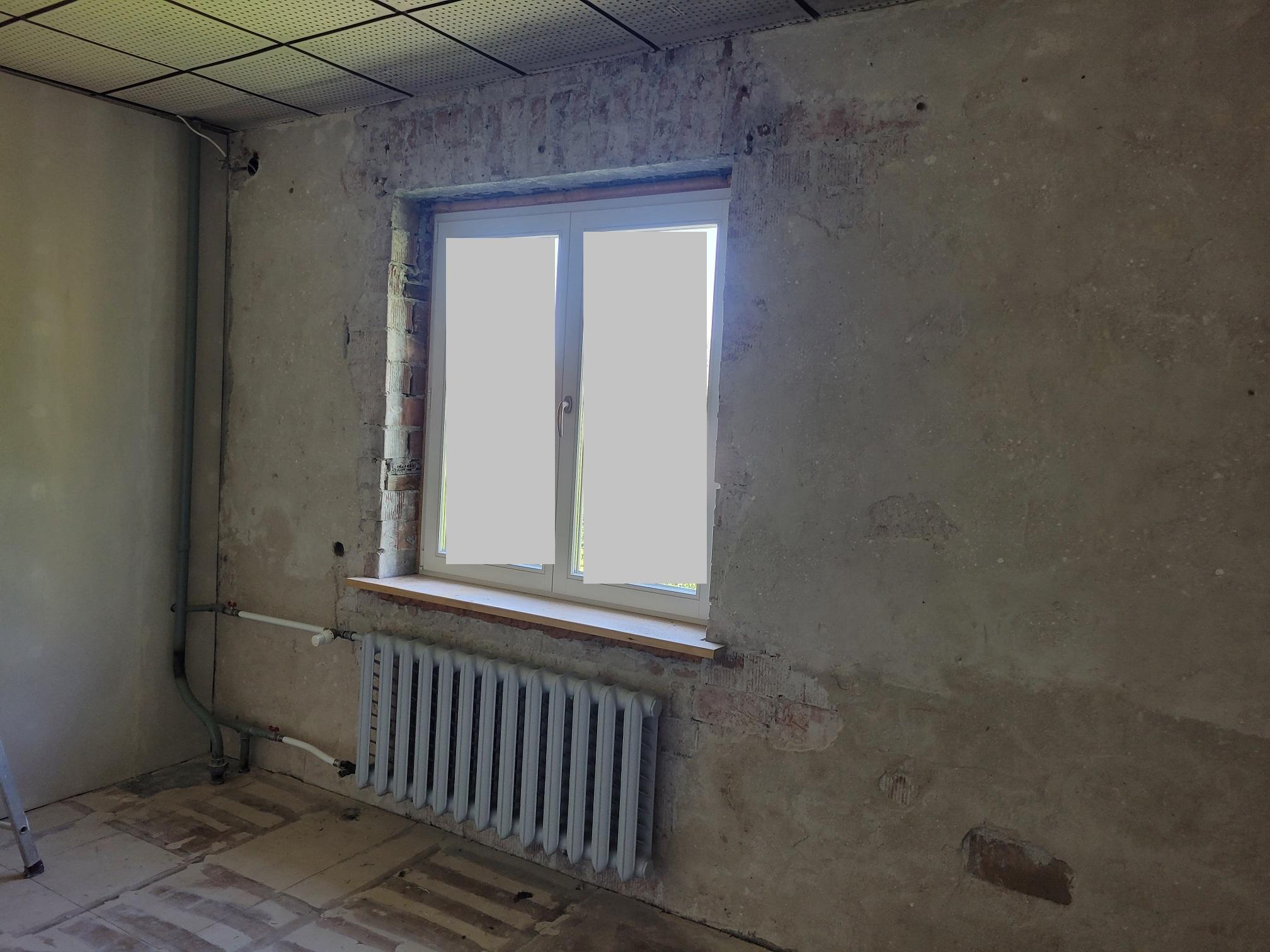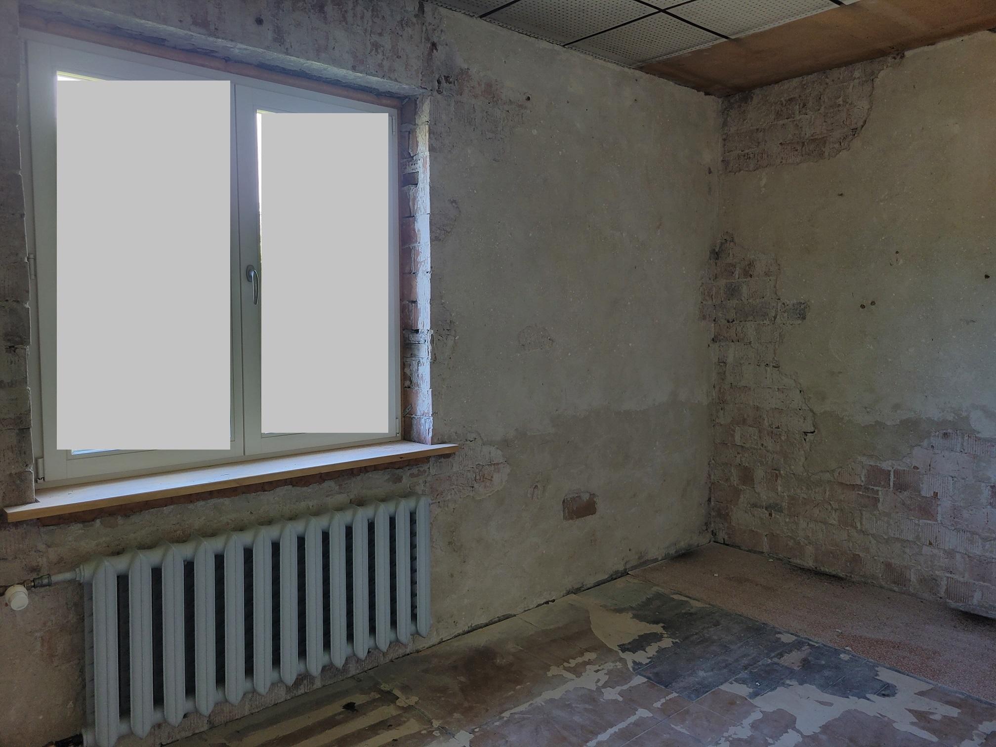 Ühe toa 2 seina krohvimistööd, koos aknapaledega.