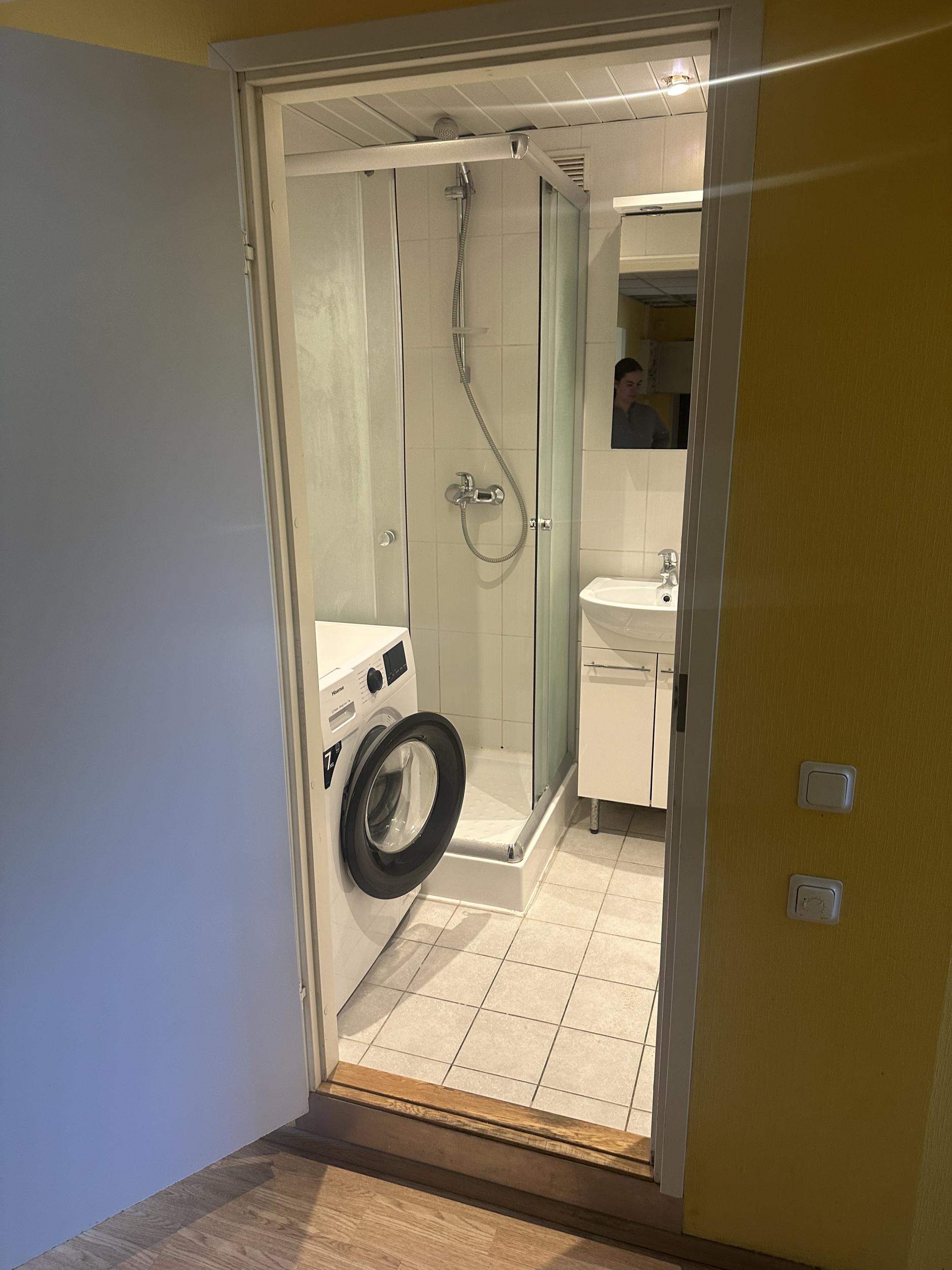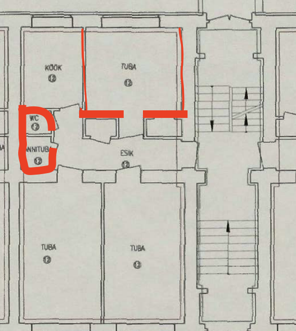 Vannituba võimalusel lammutada välja sisemine kest, teha dušinurk (e. põrandavalu, plaatimine, duššisegisti paigaldus, duššikardina/klaasi paigaldus jne), seinasisese kastiga WC, paigaldada kraanikauss ja peegel, plaatida, värvida. Elekter valgustusele, pesumasinale, peegli juurde ja peeglile. Teha torustik ümber nii, et köögi saab teisele poole vannituba panna. Vana köök tühjaks, seinad uue värvi alla.