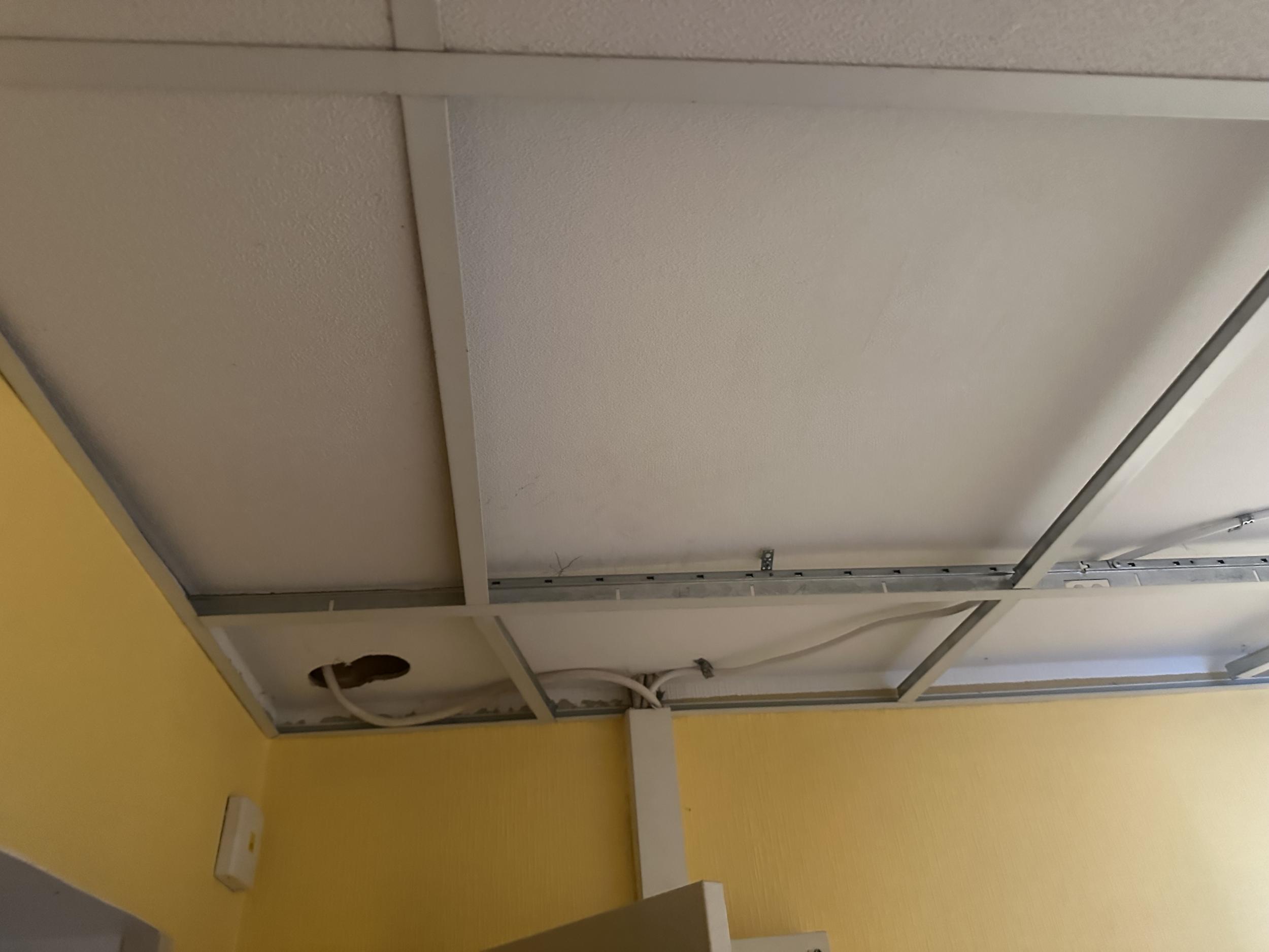 Esikus on kaks vahelage ehitatud, mõlemad lammutada, aluspind teha talutavaks, juhtmed, mis otse risti vahelagede vahel jooksevad, karpidesse jne, värvida. On ok kui torusid või juhtmeid jääb näha, need peavad olema lihtsalt korrektselt teostatud.