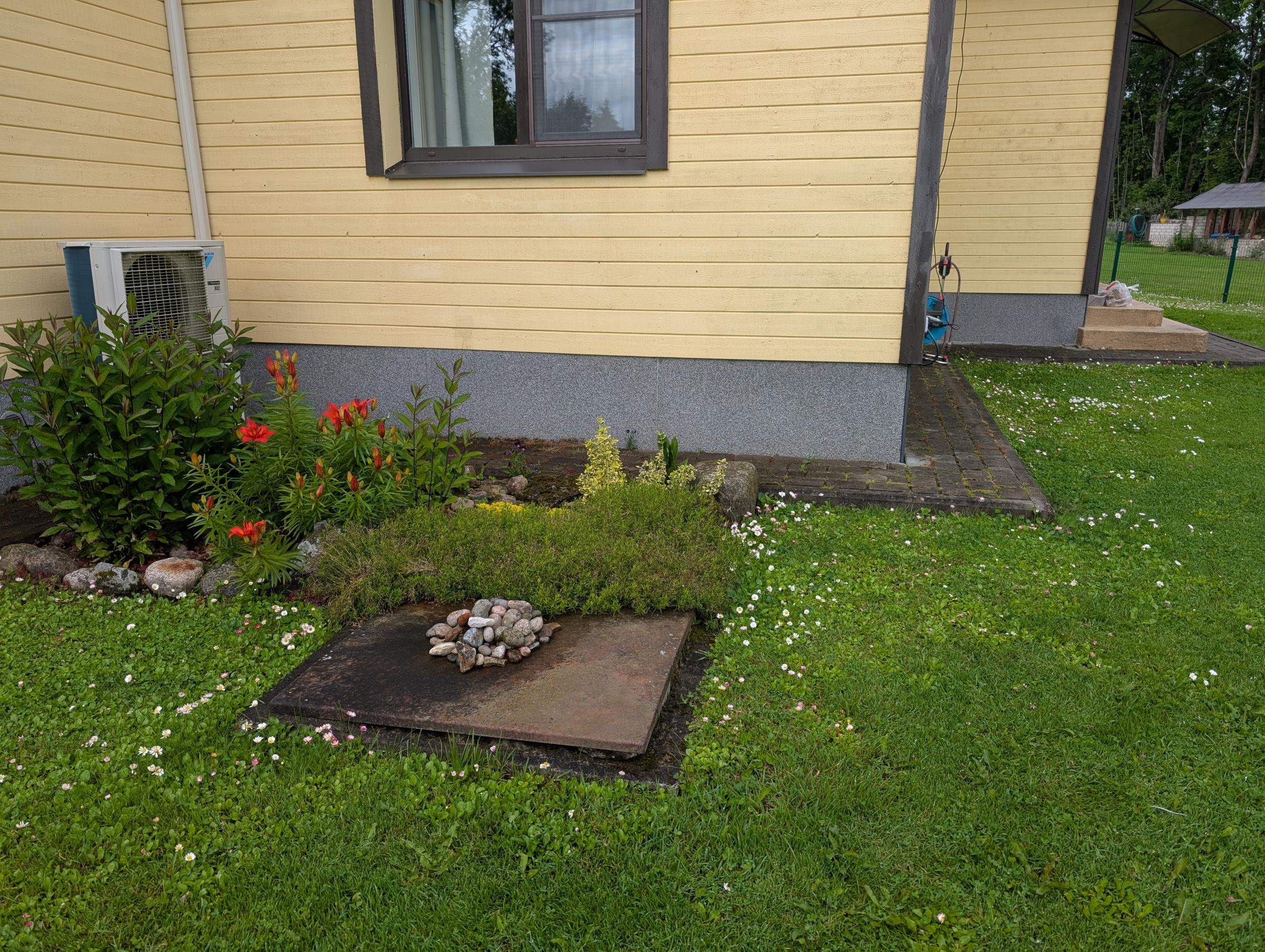 Vee trassi pikkus ca 20 m. Trass lõppeb keldris (keldri seinad paekivist). Joonisel vee trass tähistatud sinisega.