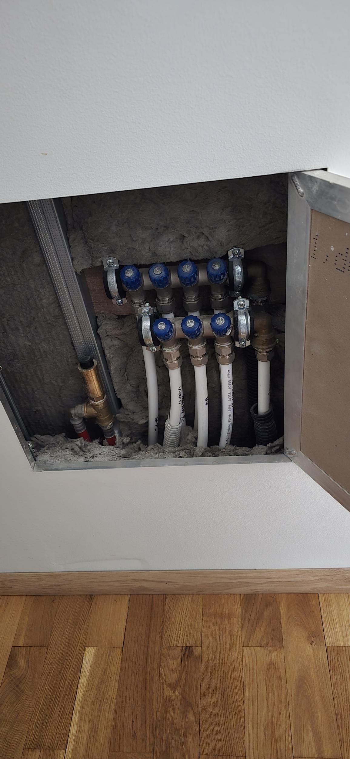 Koridoris paikneb põrandakütte kollektor (vabade portidega) – vajalik ainult ühendusteks.