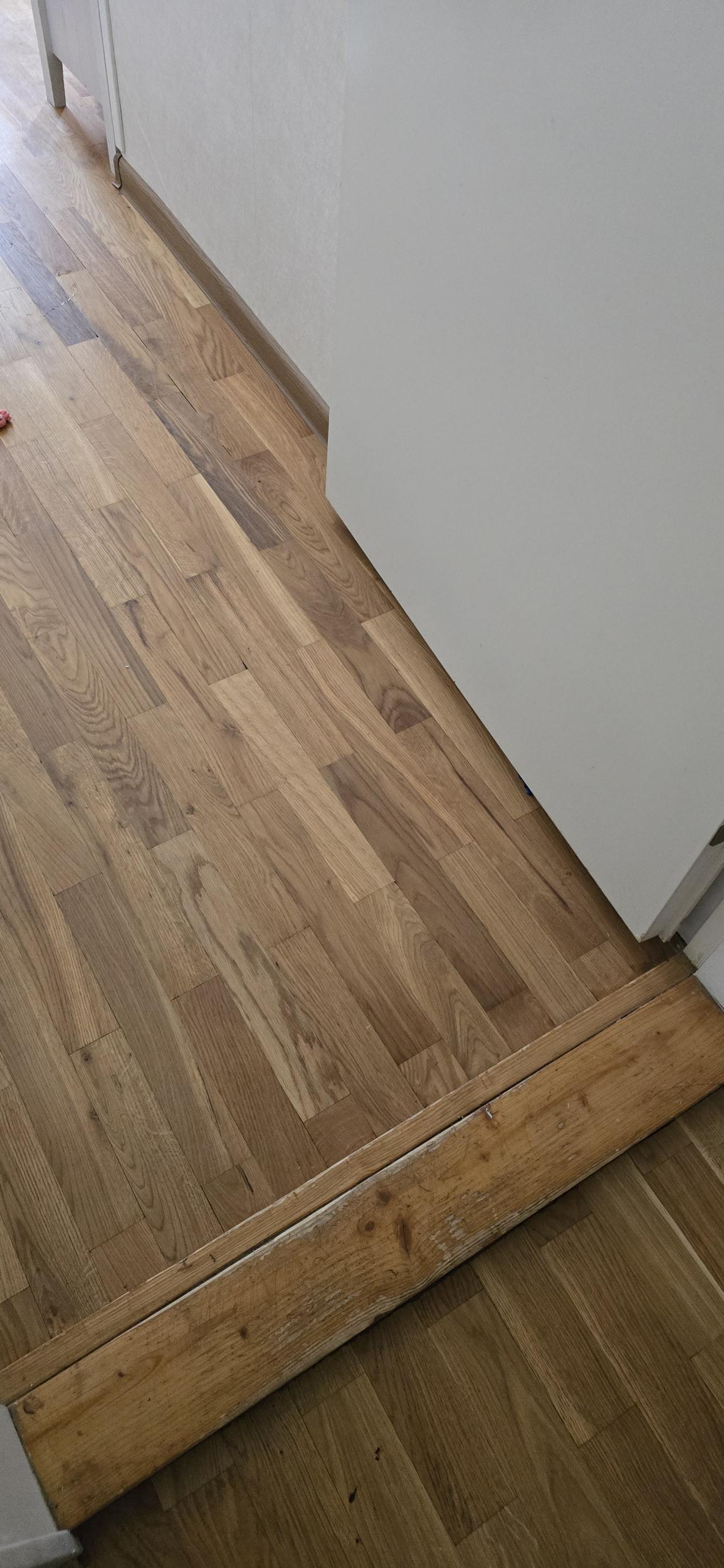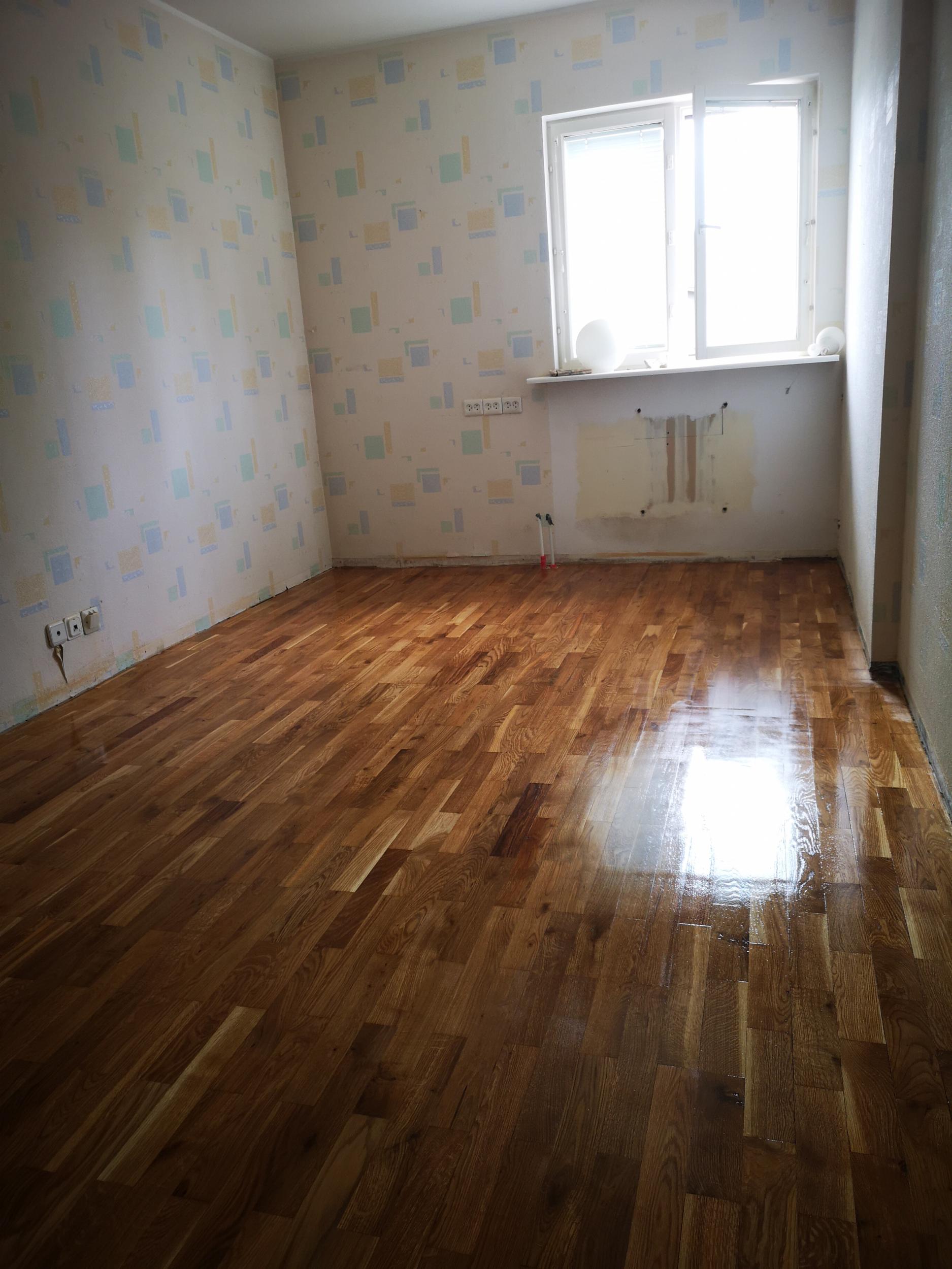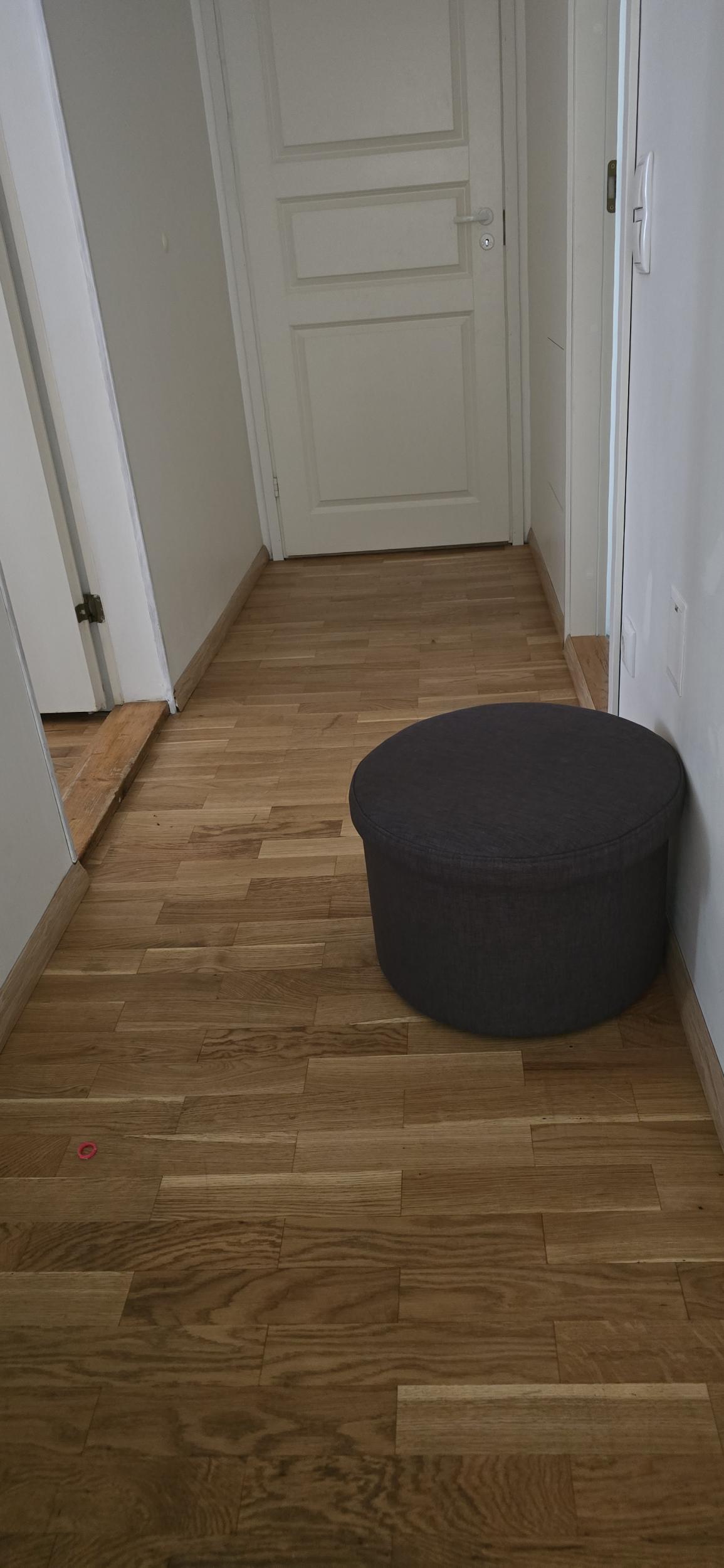 Olemasolev põrand: täispuit‑parkett laagidel (tuleb eemaldada)