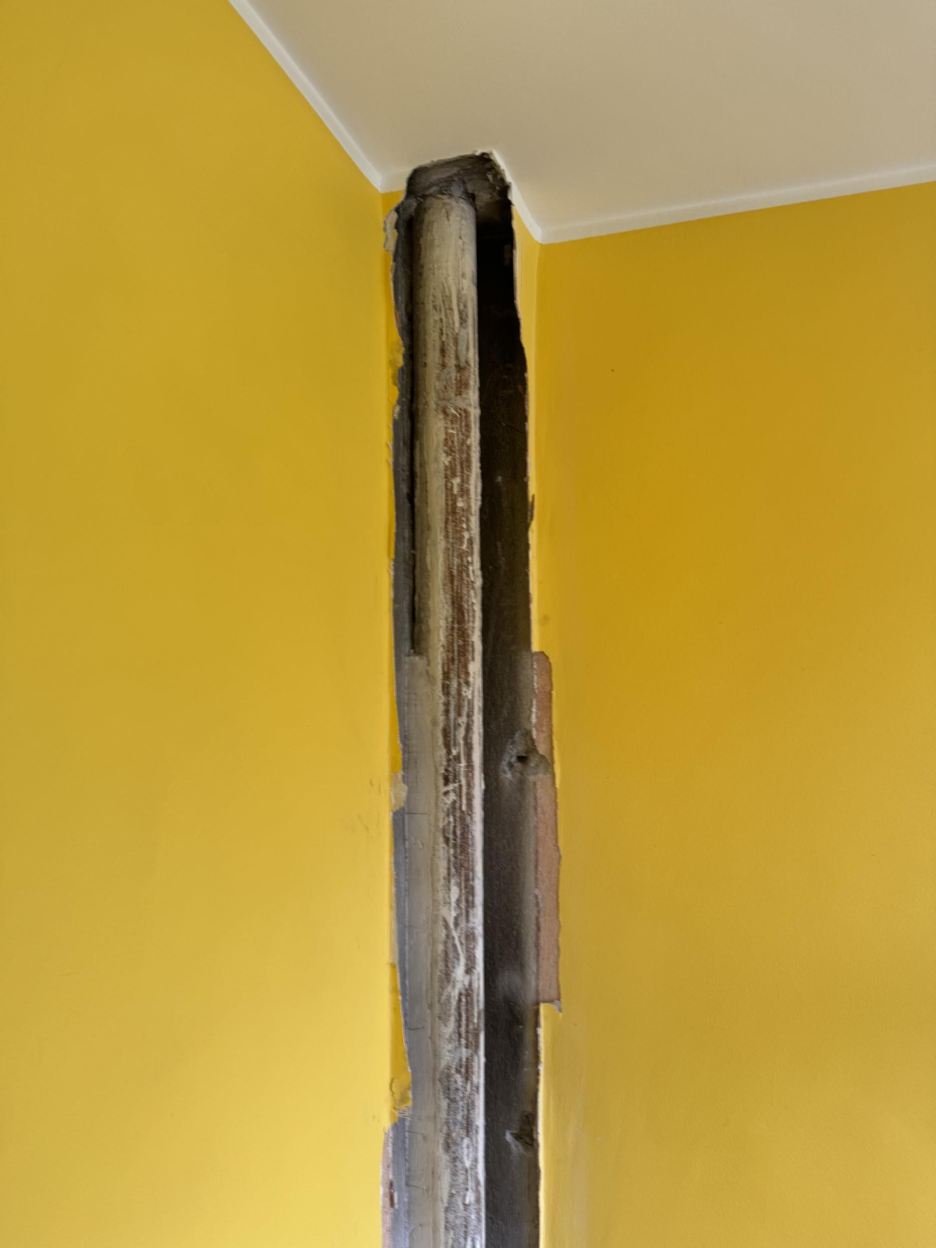 Oleks vaja taastada selle ümber sein kuna selgus, et küttesüsteemi vahetusega seda toru ei asendata, uue süsteemiga pole enam vaja ja kahjuks ei võeta neid ära samuti vaid jäävad korteritesse, lisaks värviks toa samuti sel juhul juba üle.