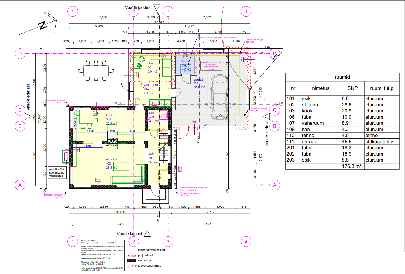 Vaja läheb elektriprojekti, mille järgi üldehituse käigus paigaldada elektrijuhtmestik eramaja juurdeehituse osale (joonisel ruumid 106, 107, 110, 111)