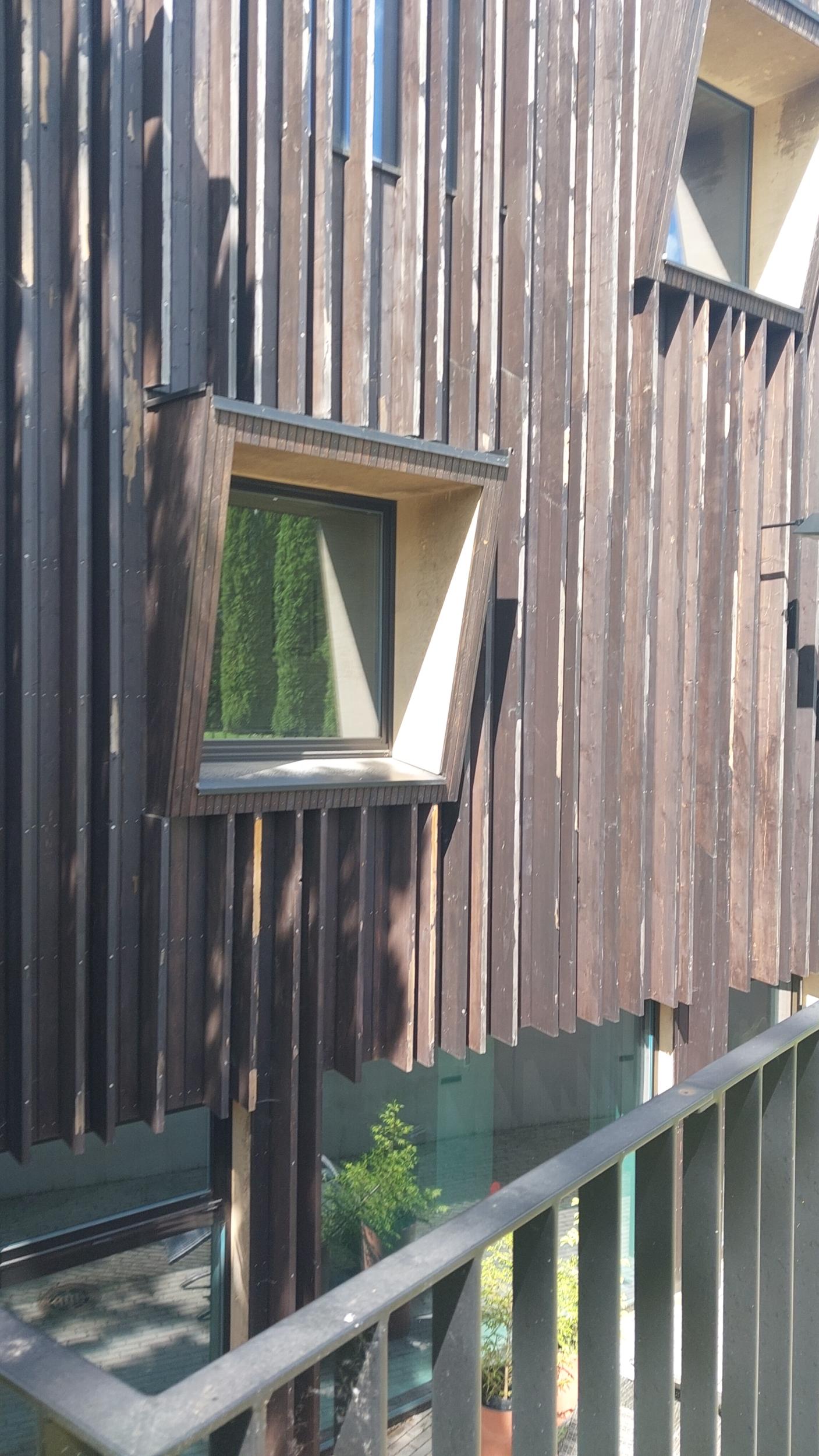 Värvida tuleb kaks kihti, kasutades kvaliteetseid ja vastupidavaid värve. Laudis on hööveltatud. Seinal värvitoon: Nordic Black & Brown. Värvikaart PINOTEX EXTREEM LASUR. Aknapaledel beeš hallitust tõrjuv värv.