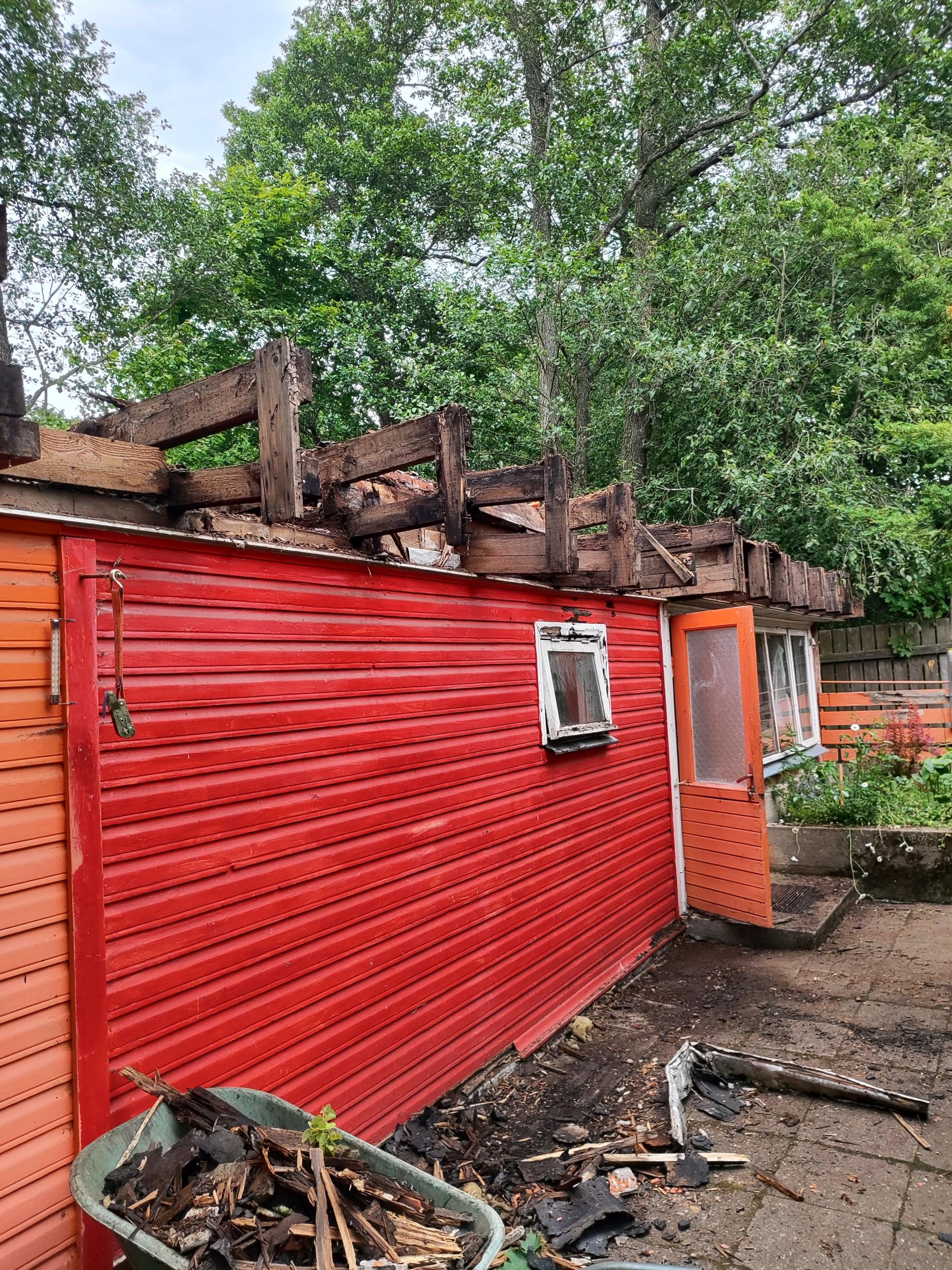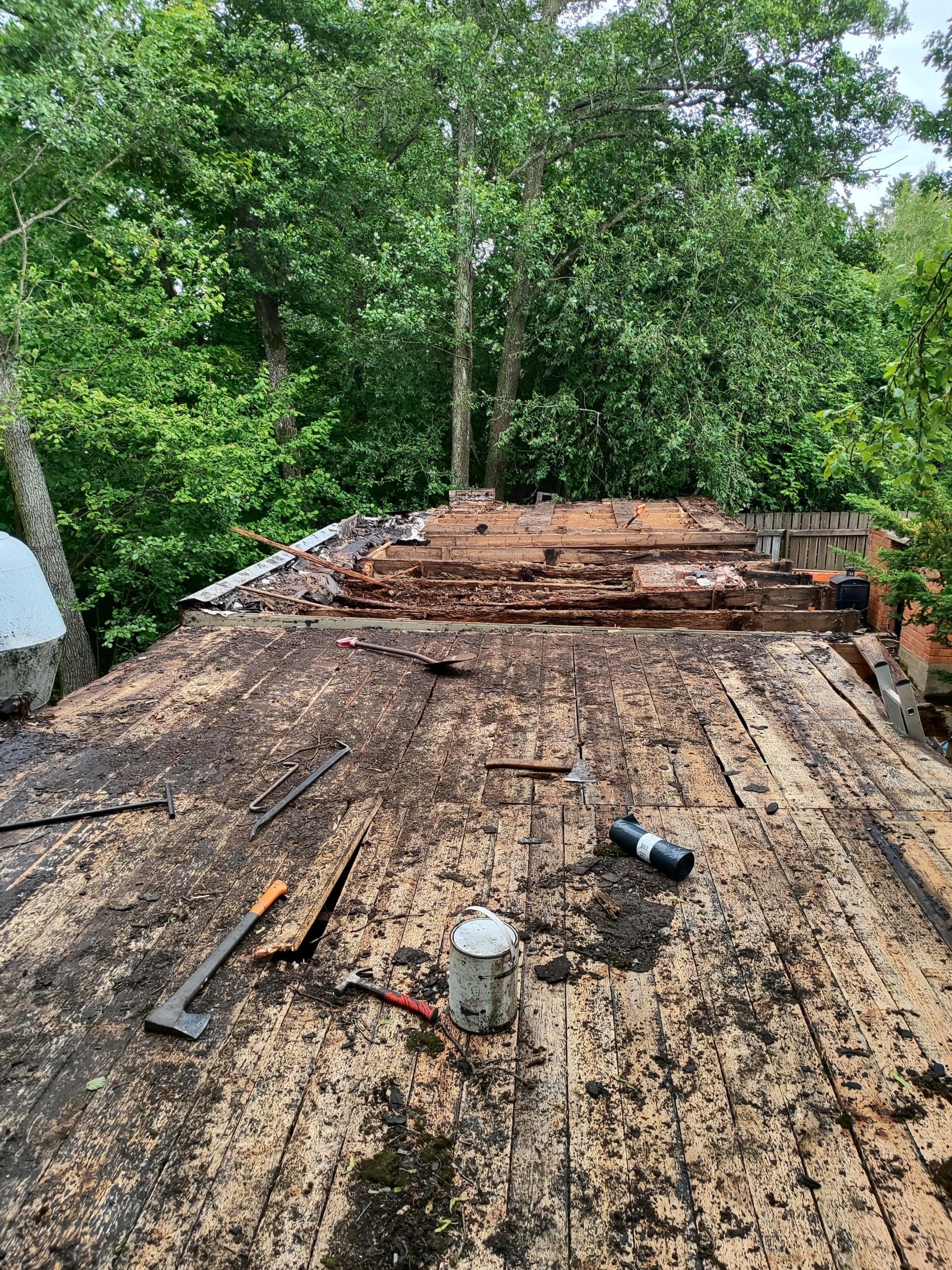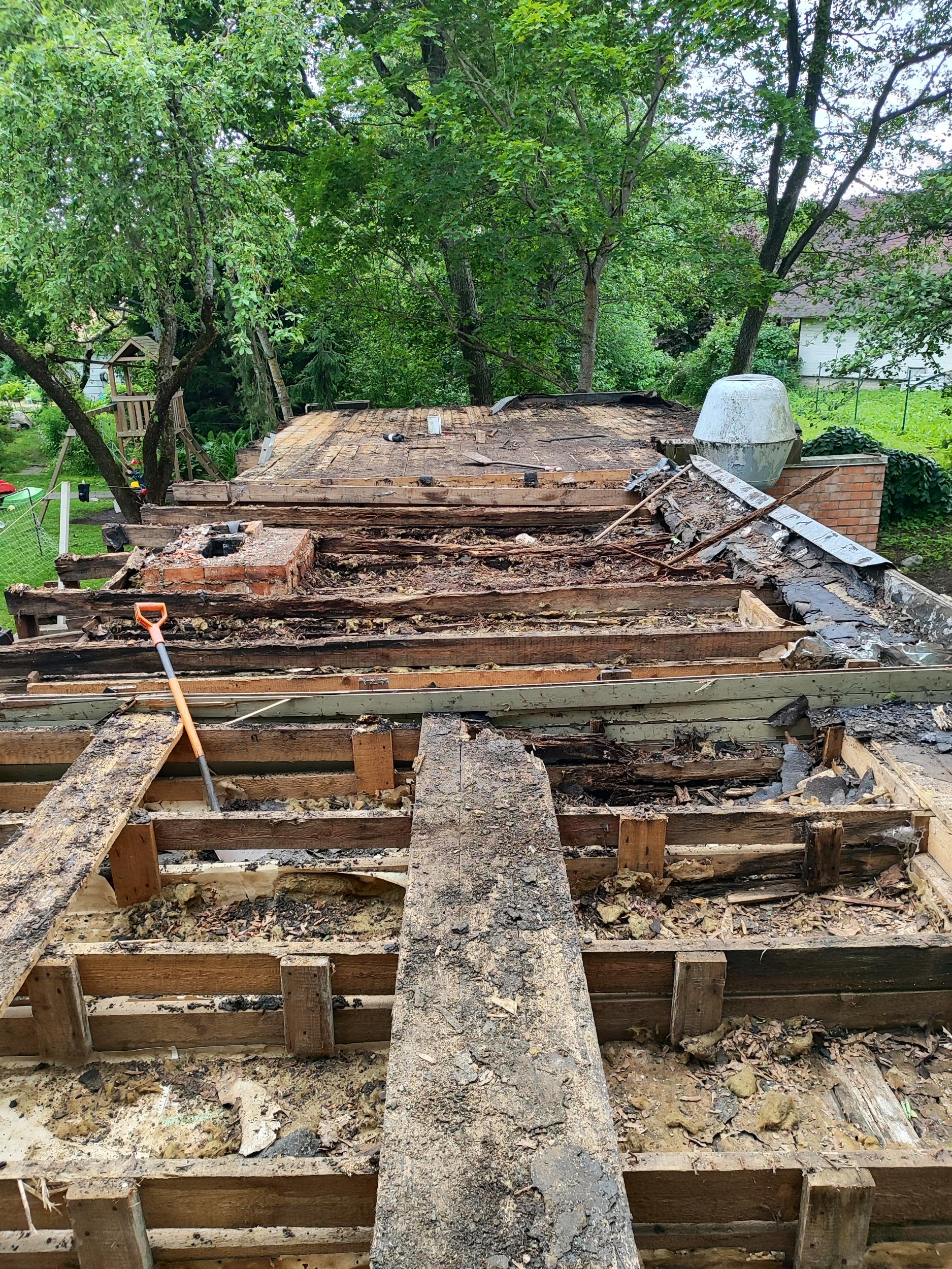 Vaja oleks võtta maha katus, kuni seinteni, kaasa arvatud poole hoone lagi. Kogu katuse pind 90-100m2.