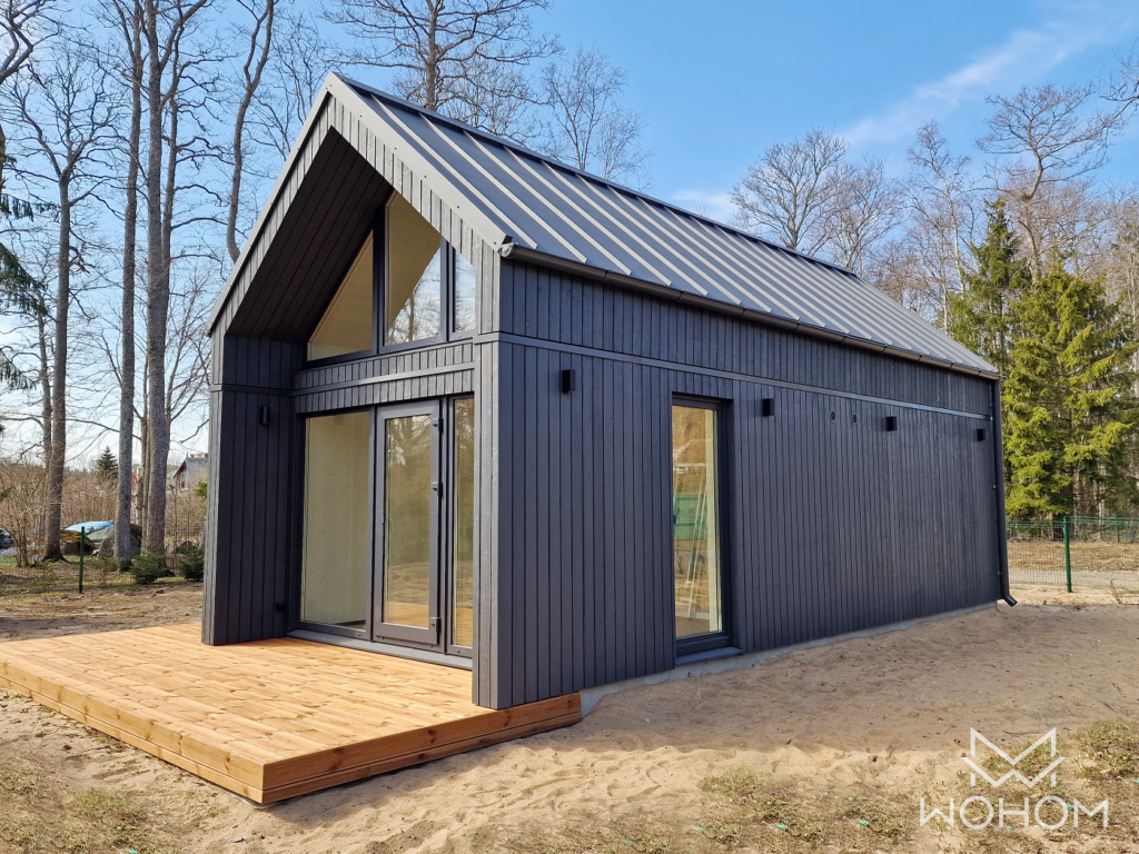 Arvestatud ca 40m2 väikemaja tootmisega. Välisseinad 45x195 karkassil tuuletõkkekips+kangas + tuulutusliist ja horisontaalne laudis 21x145 UYV / Sees aurutõkkekile, lisaroovitus 45x45 (lisasoojustus 50mm kivivill) Pakkumuses ei ole arvestatud küttelahendust(maakütte/õhkvesi pumpa) Küll aga hinnas põrandaküttekontuuri punumine kütte tarbeks. Siseseinad 45x95 puitkarkassil, mõlemal poolel OSB ja kips. Vannitoas arvestatud keraamilise plaadiga vääringus 30EUR/m2. Hinnapakkumises arvestatud plaatvundamendi ja väike maja tootmisega (tehases), paigaldusega väljast valmis, seest kipsi alla ja vannituba hüdroisolatsiooniga ja plaaditud.