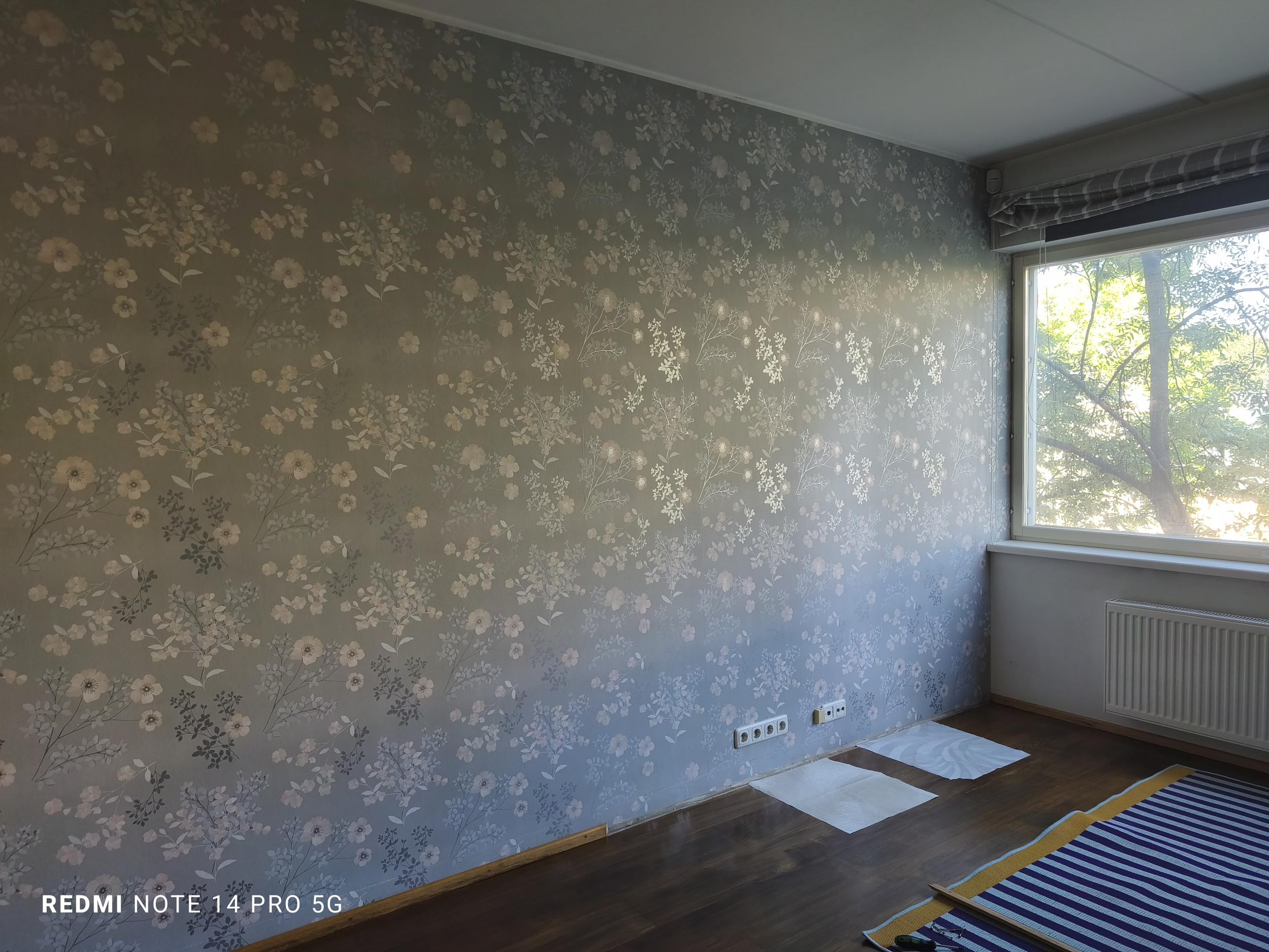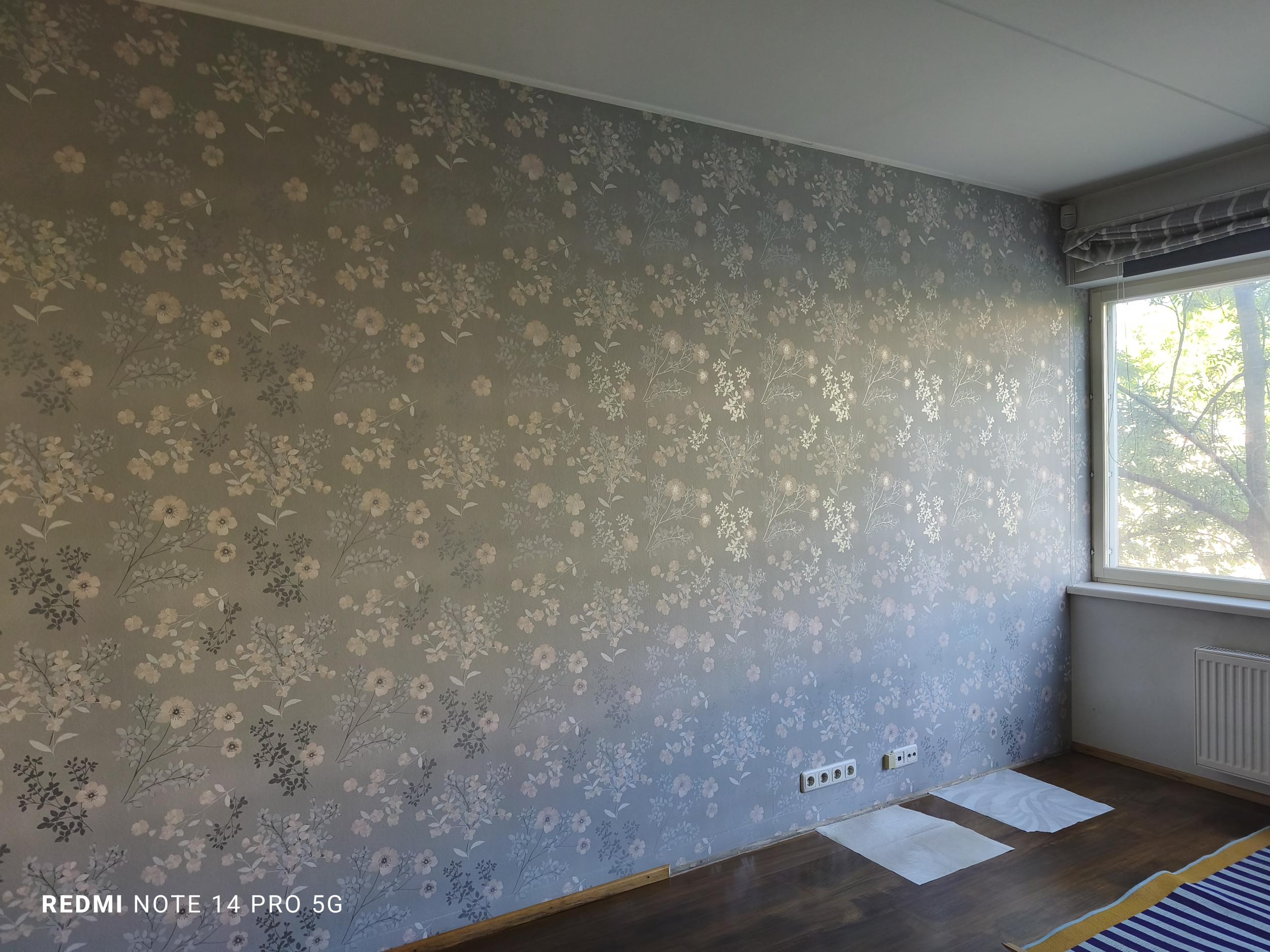 Tapeetida sein (5,60 m seina laius; 2,70 m kõrgus), ca 4 rulli tapeeti, tapeediliim töövõtja poolt. Liistud eemaldatud. Olemasolev tapeet ca 4a tagasi paigaldatud, on defektne.