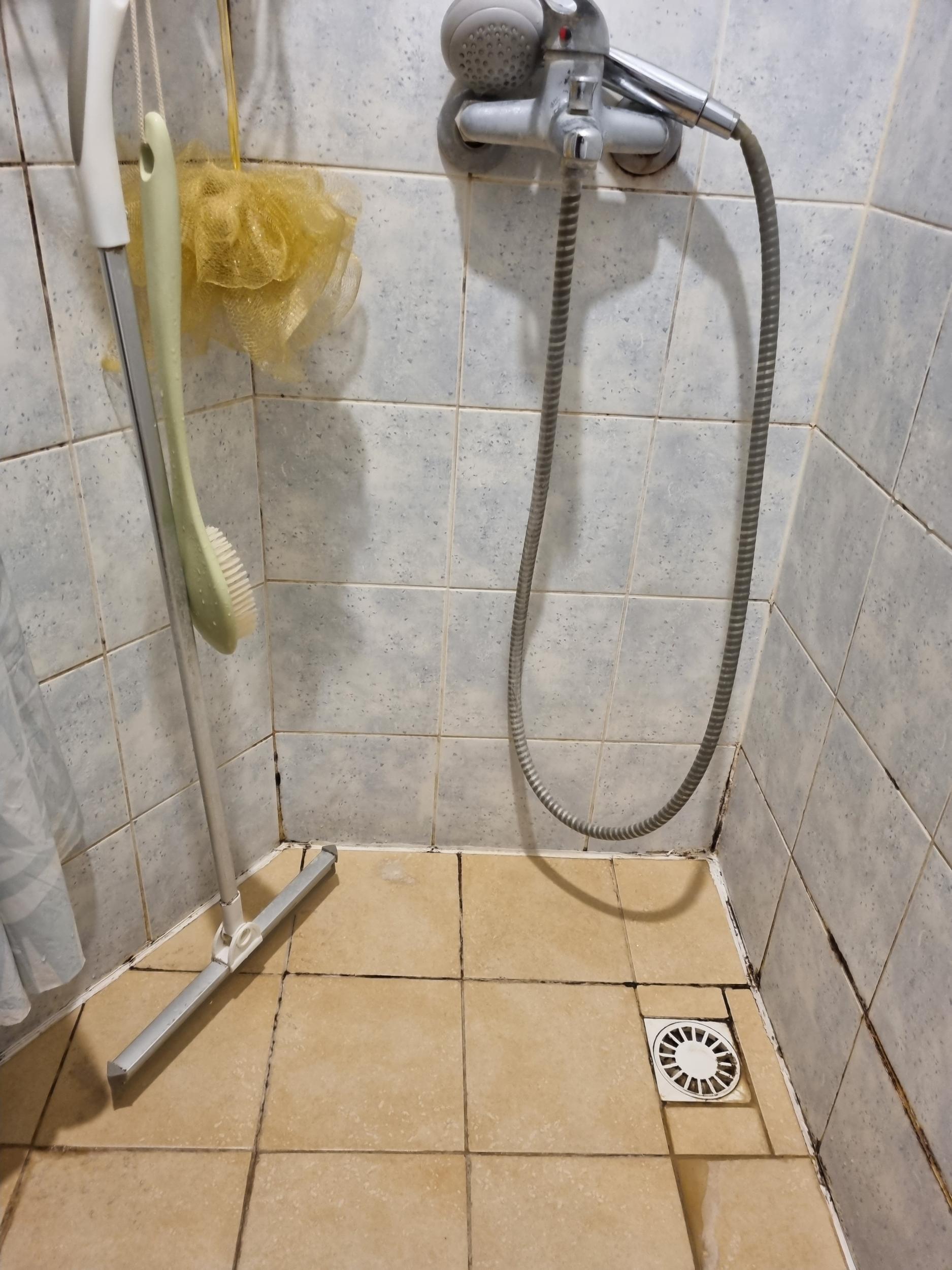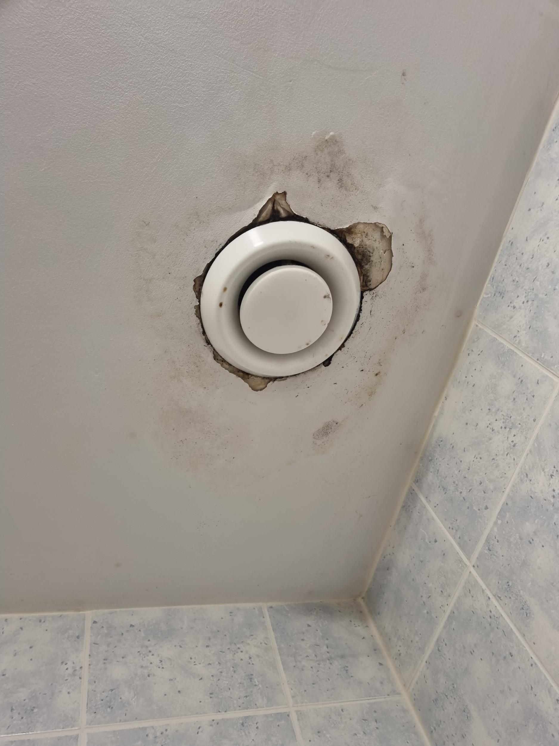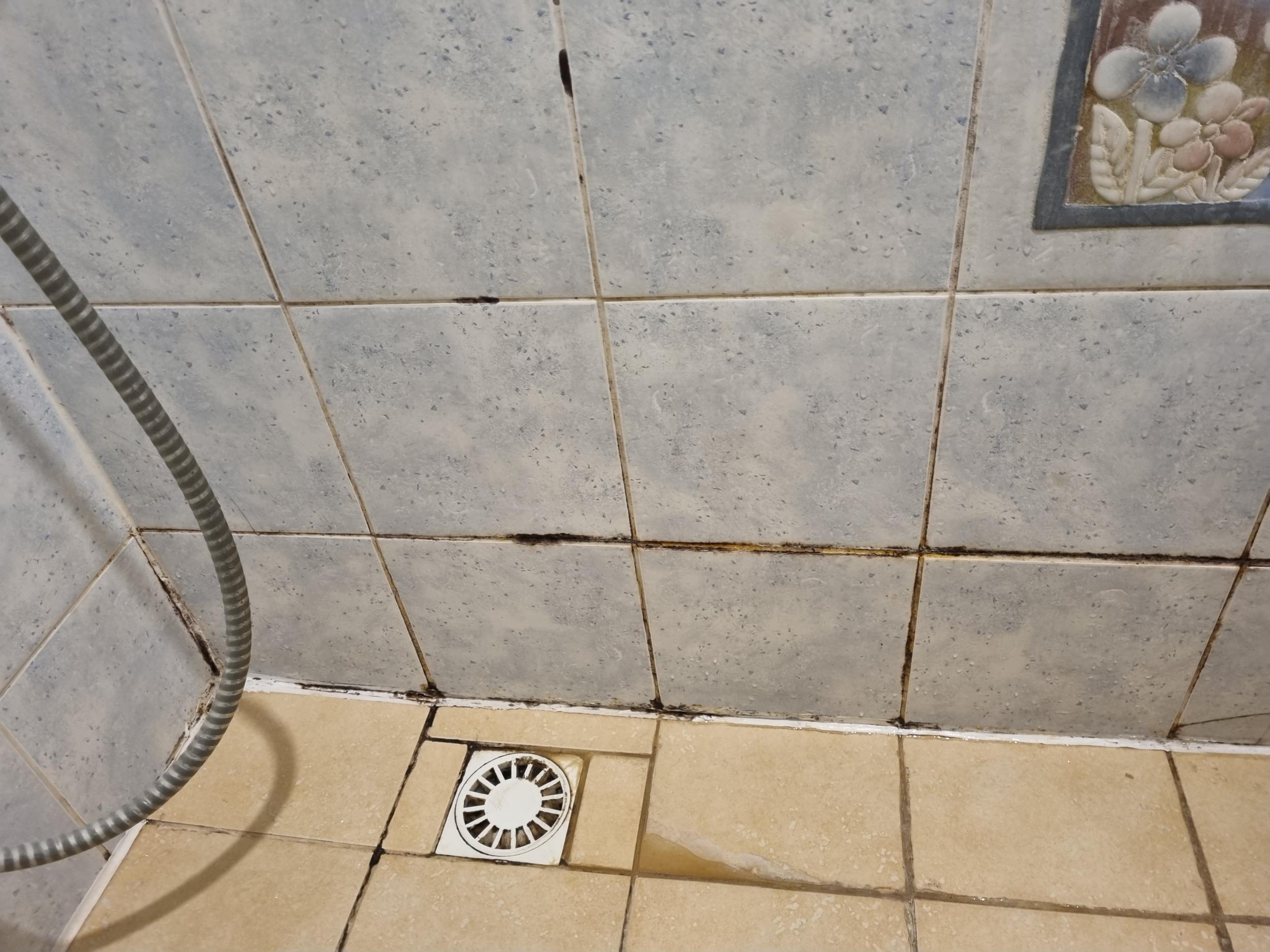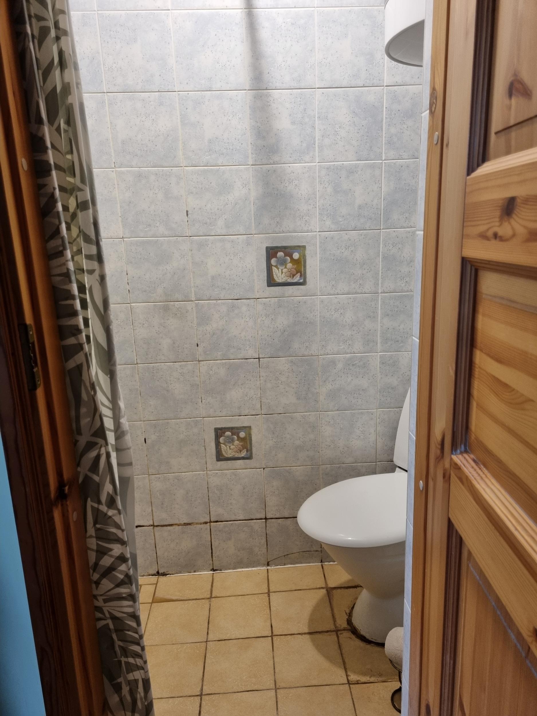 Vannitoa laes on ventilaatori toru ümber lagi katki (pandud kipslaadist vahelagi), vannitoa plaatide vahel on näha hallitust. Oletan, et kõige kriitilisem on lagi, aga ilmselt tuleks ka plaadid vahetada ja vaadata, kas seina taga on hallitus. Vannituba on tillukene (sinna mahub WC pott ja dušinurk vaevu ära, korraga neid kasutada ei saa). Dušinurk ja WC on ehitatud 2006. aastal, siis kui vanas puuküttega kortermajas sai ostetud korter ning see remonditud ja moodsaks muudetud. Põrandaplaatide all on põrandaküte, mis on üürnike väitel ka kasutusel pidevalt, et niiskust tõrjuda. Vannitoa põrandaplaadid vahetati 2014 või 2015, kuna põrandaküte vajas toona parandamist. Pakkumine võiks siis olla kolmes variandis: A) üksnes lae kordategemine; B) lae ja seinaplaatide vahetus, vajalikud tööd sellega seoses ja C) ka vannitoa põranda ülesvõtt, kui selgub, et hallitus on ka põranda all. Mõõdud: Seina kõrgus 235,5cm, Seina laius 51+55,5+159,5+69+48,5+15cm. Põrand ja lagi (kõige pikemad mõõdud) 86,5x159,5cm.
