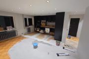 Kaks tuba ja esik, seinte ja lae ülemineku krohvimine ja seinte pahteldus + krunt värv. Kipsi kulus ca102 m2