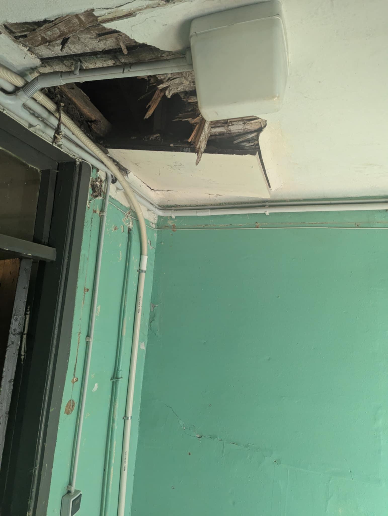 Kesklinna-Kadrioru piiril asuva 1910 aastal ehitatud Lenderi maja II korruse trepikoja kohal asuv vahelagi langes sisse ning vajab kiiresti parandamist.