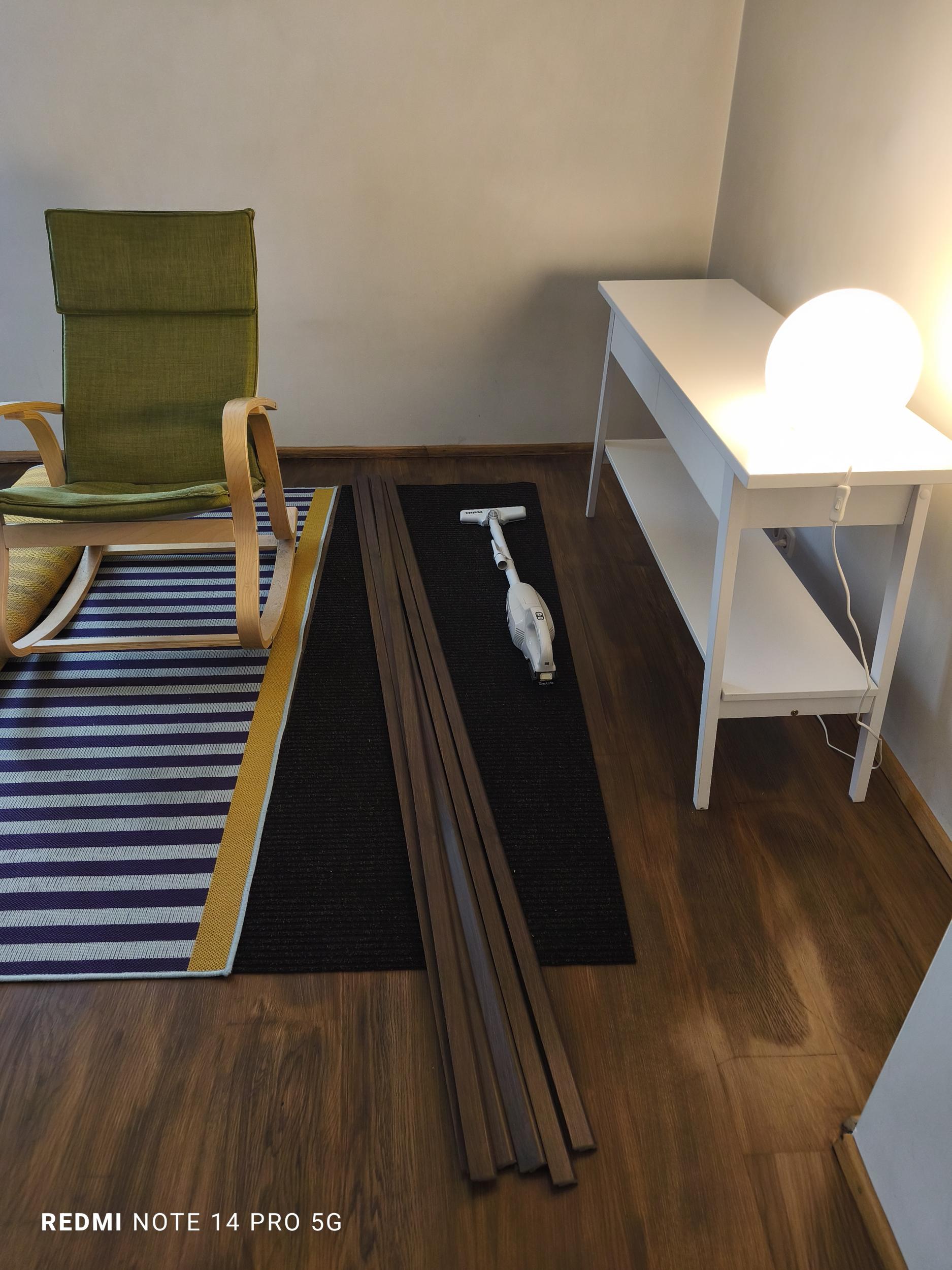 Kinnitada liistud seoses uue parketi tooniga. Uued liistud wenge värvi.