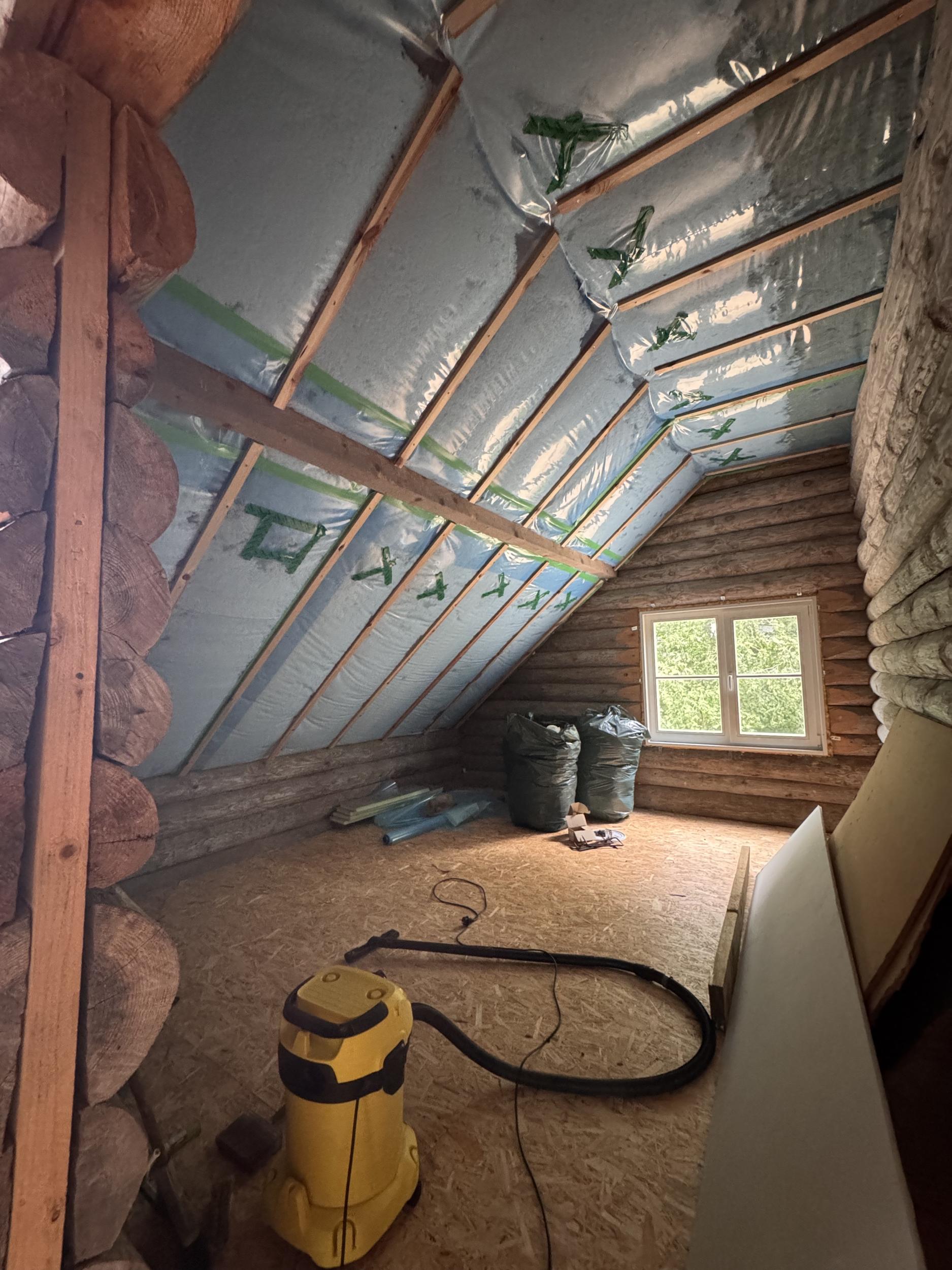 Ülakorrusele on vaja paigaldada paneelidega laeplaat kolmele magamistoale ja esikusse - näidis alumise korruse töödest on illustratiivne. Palun lisage kõik materjalid hinna sisse. Põranda kogupindala on umbes 12 m x 8 m.