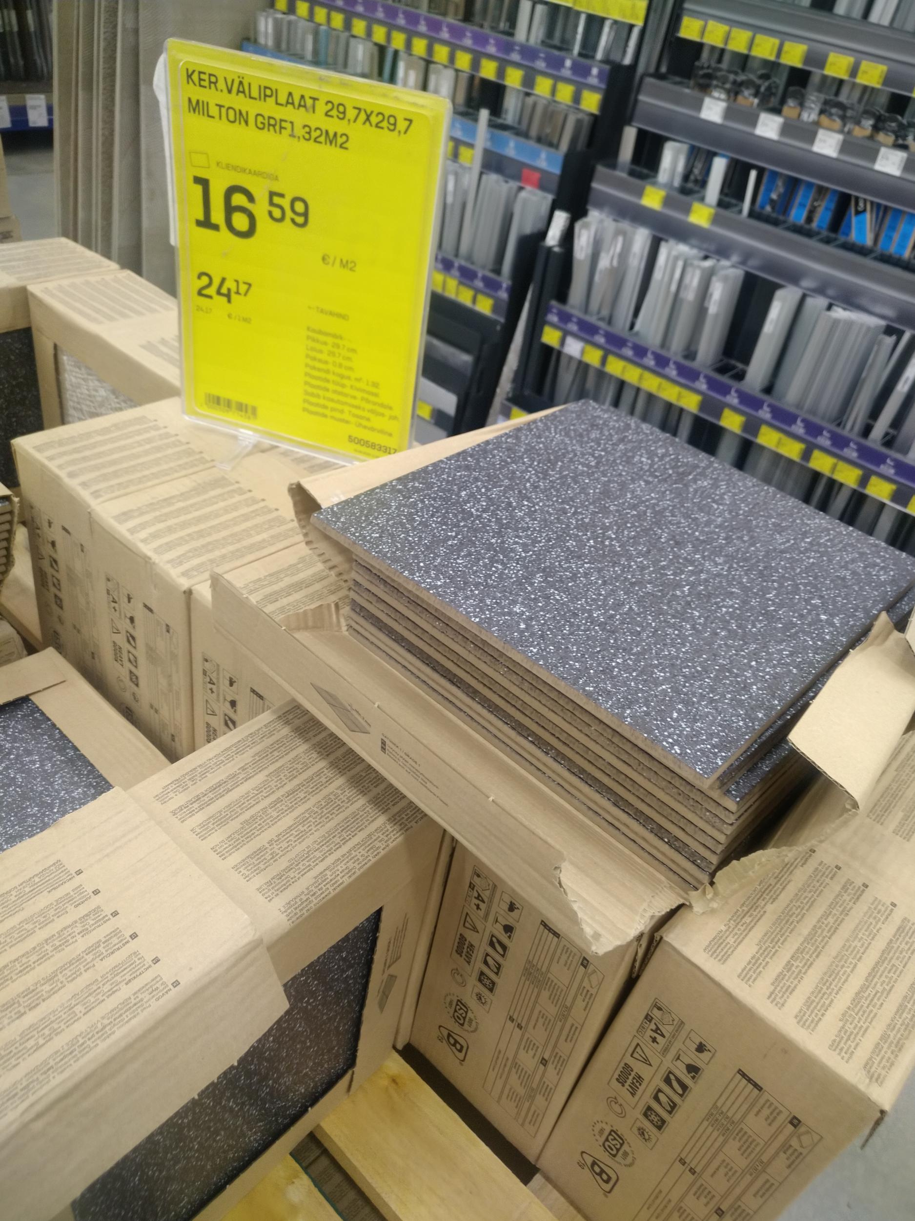 Plaadid: Milton 29,7 × 29,7 cm (must/hall toon) – hetkel saadaval soodushinnaga K-rauta poes.
