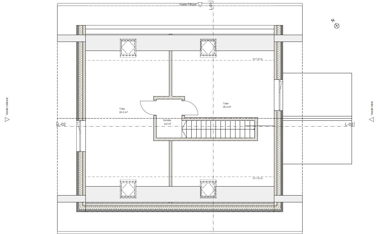 Maja palgid on olemas. Kui vundament on valmis, paneb teine ettevõte välisseinad püsti. Teist korrust ei ehitata koheselt valmis, s.t sooviks teise korruse vastavalt vajadusele kunagi hiljem välja ehitada. Lisaks oleks vaja ehitada ka vahelagi ja katus vastavalt projektile (katuseaknaid esialgu ei lisata).