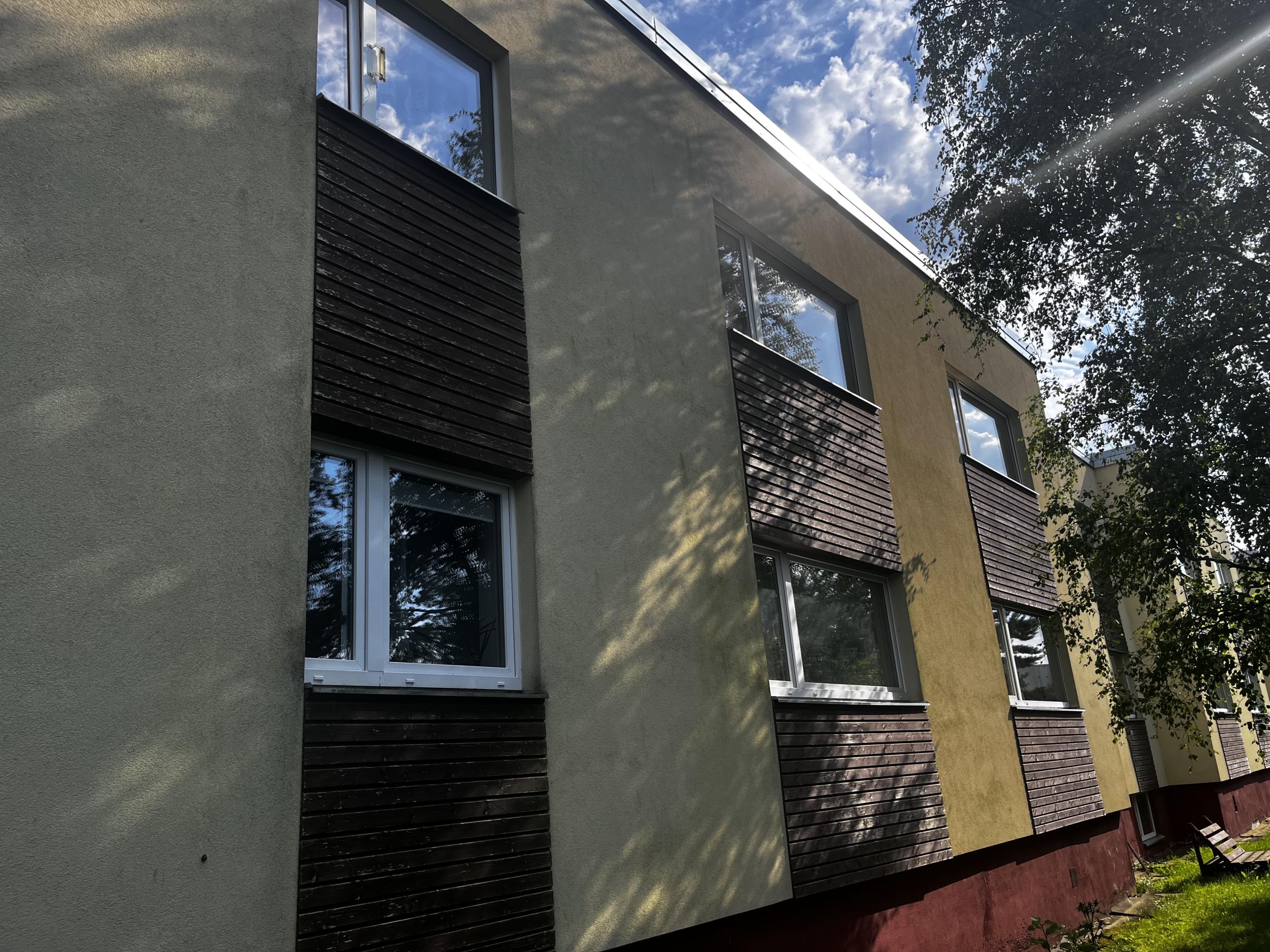 Fassaadi puiduosa värvimine 162 m2 PINOTEX ULTRA LASUR (rõdu piirded on sisse arvestatud)