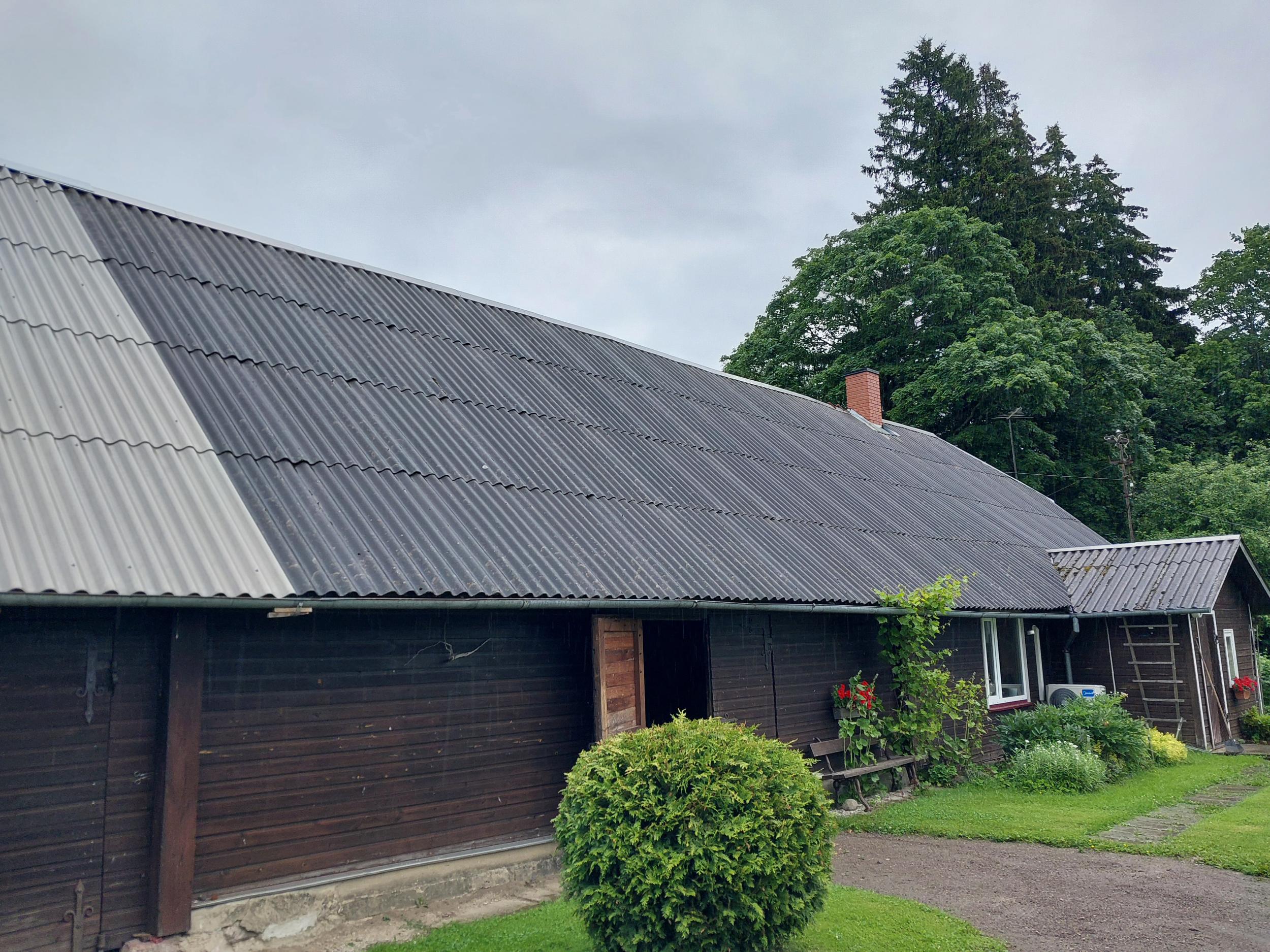 Katuse pind 300m2. vana eterniit maha, selle all olev sindel maha, vajadusel korrastsda roove ja uus eterniit peale. Momendil üks kolmandik katusest tehtud vaja edasi teha. eterniit olemas ja kruvid ka.