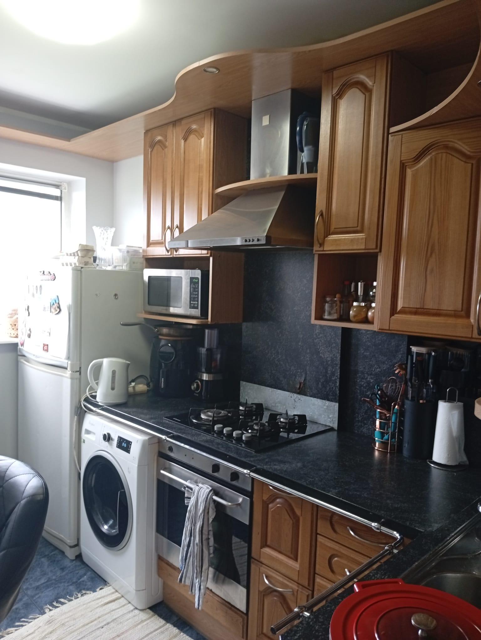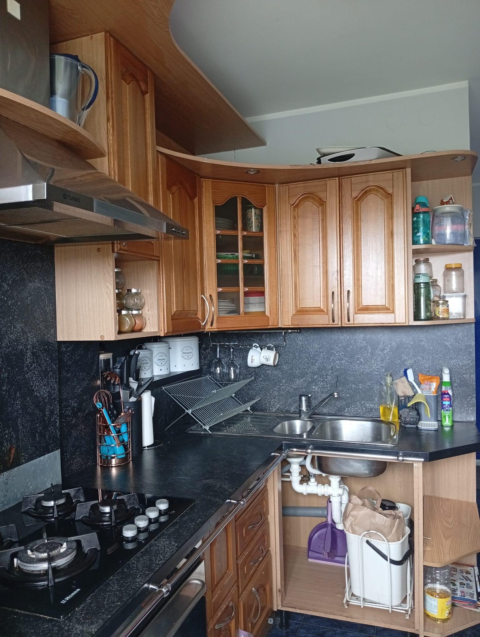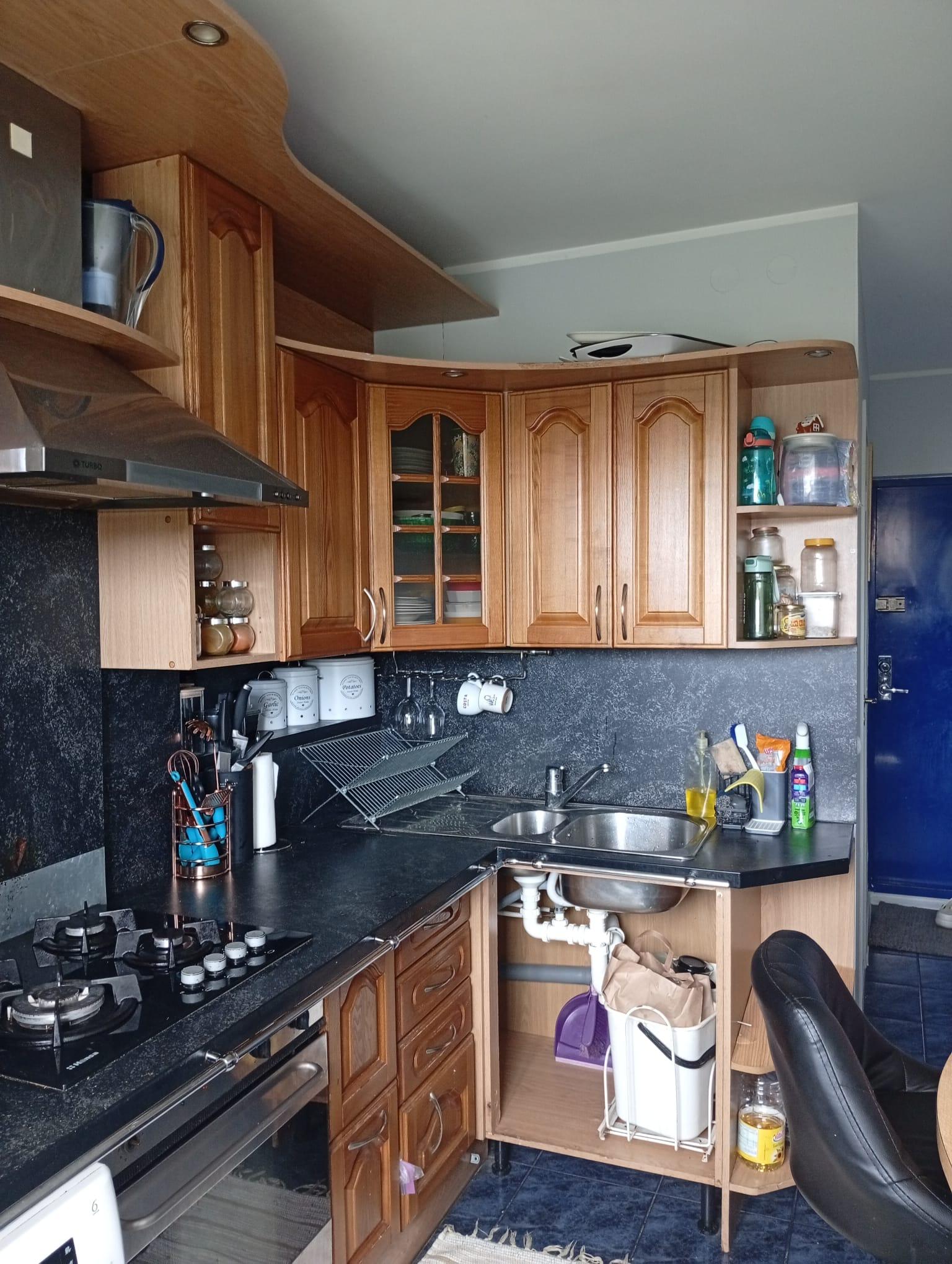 3. Pärast köögi paigaldamise lõppu pahteldage ja värvige sein üle. Värvi pakun mina (klient), et see sobiks praeguse seina värviga.