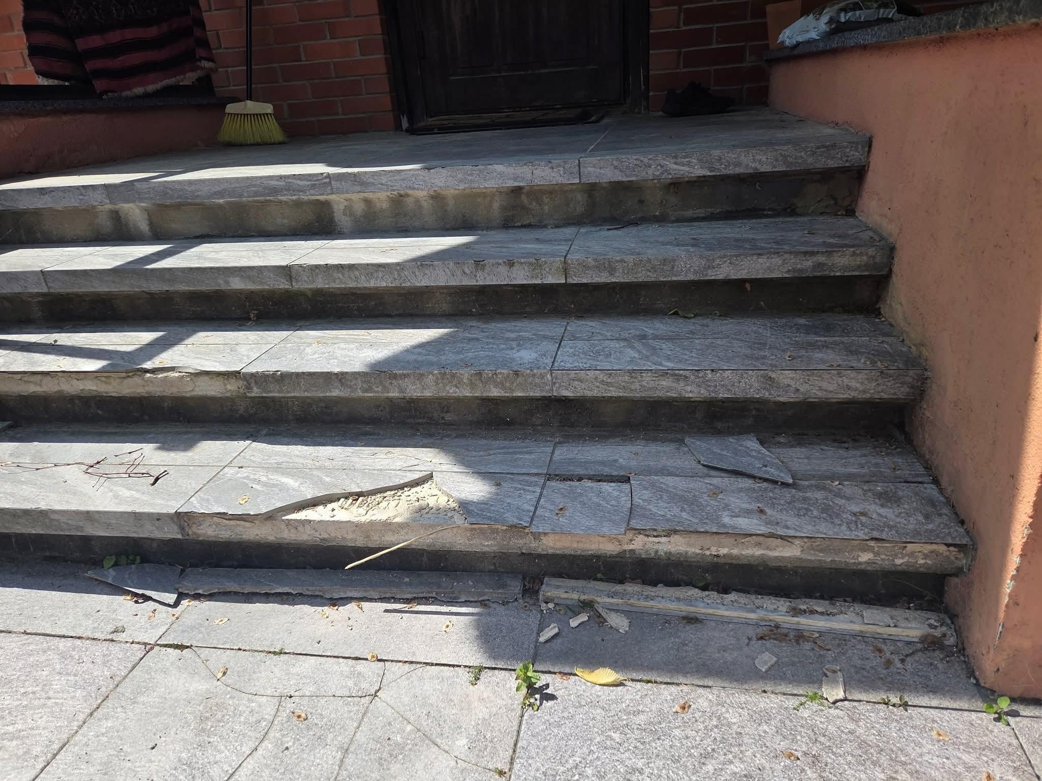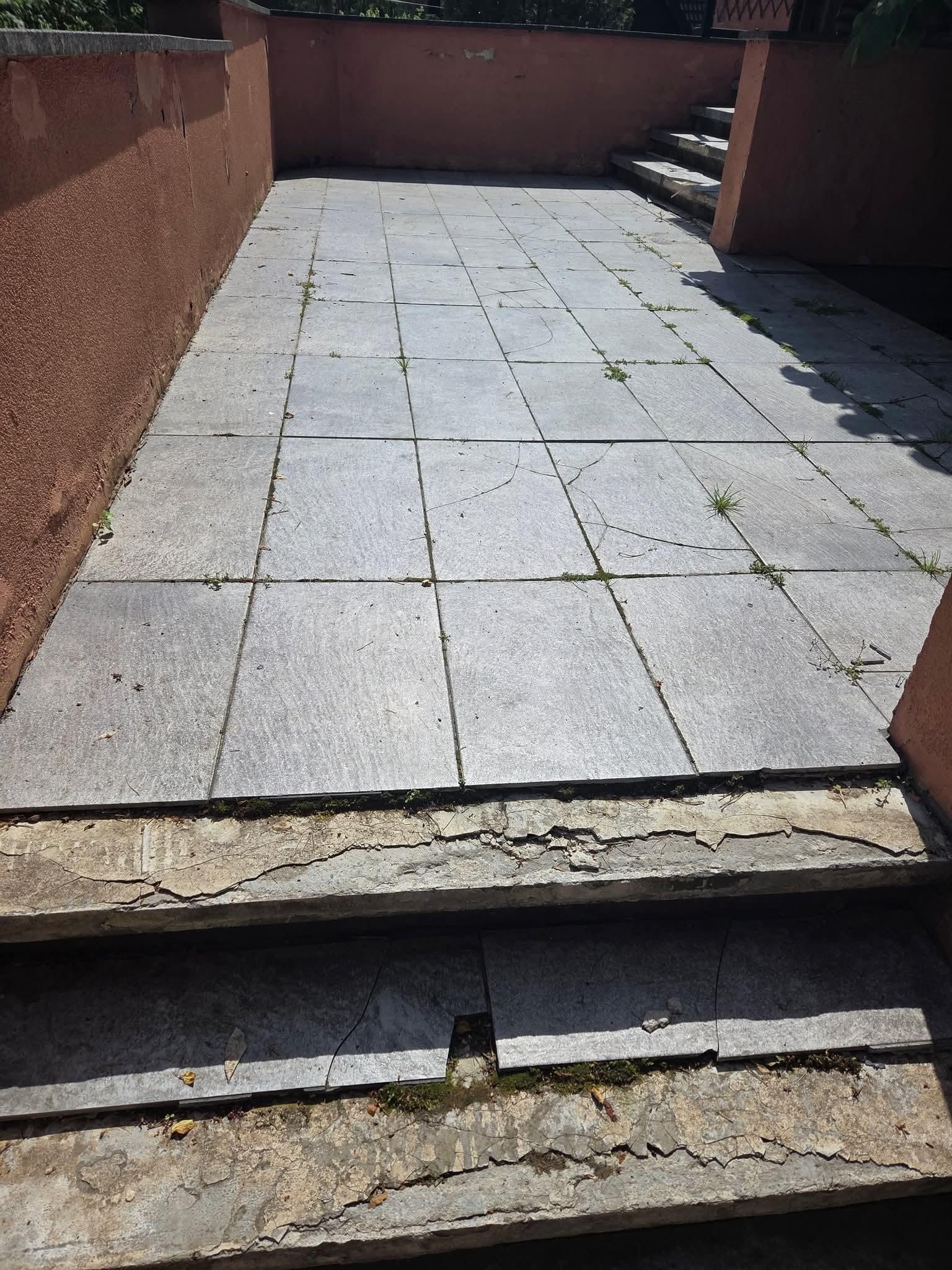 Väliterassi praeguste plaatide eemaldamine ning uue kate valamine. Terass on ca 24m2 ning on kolmest tasandist, 7 trepiastet.