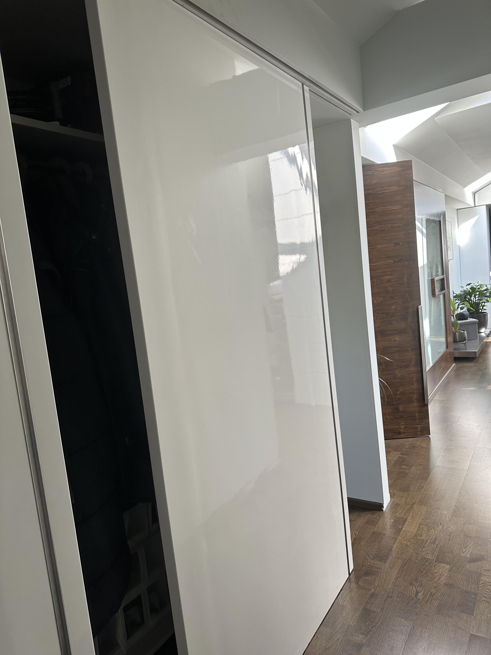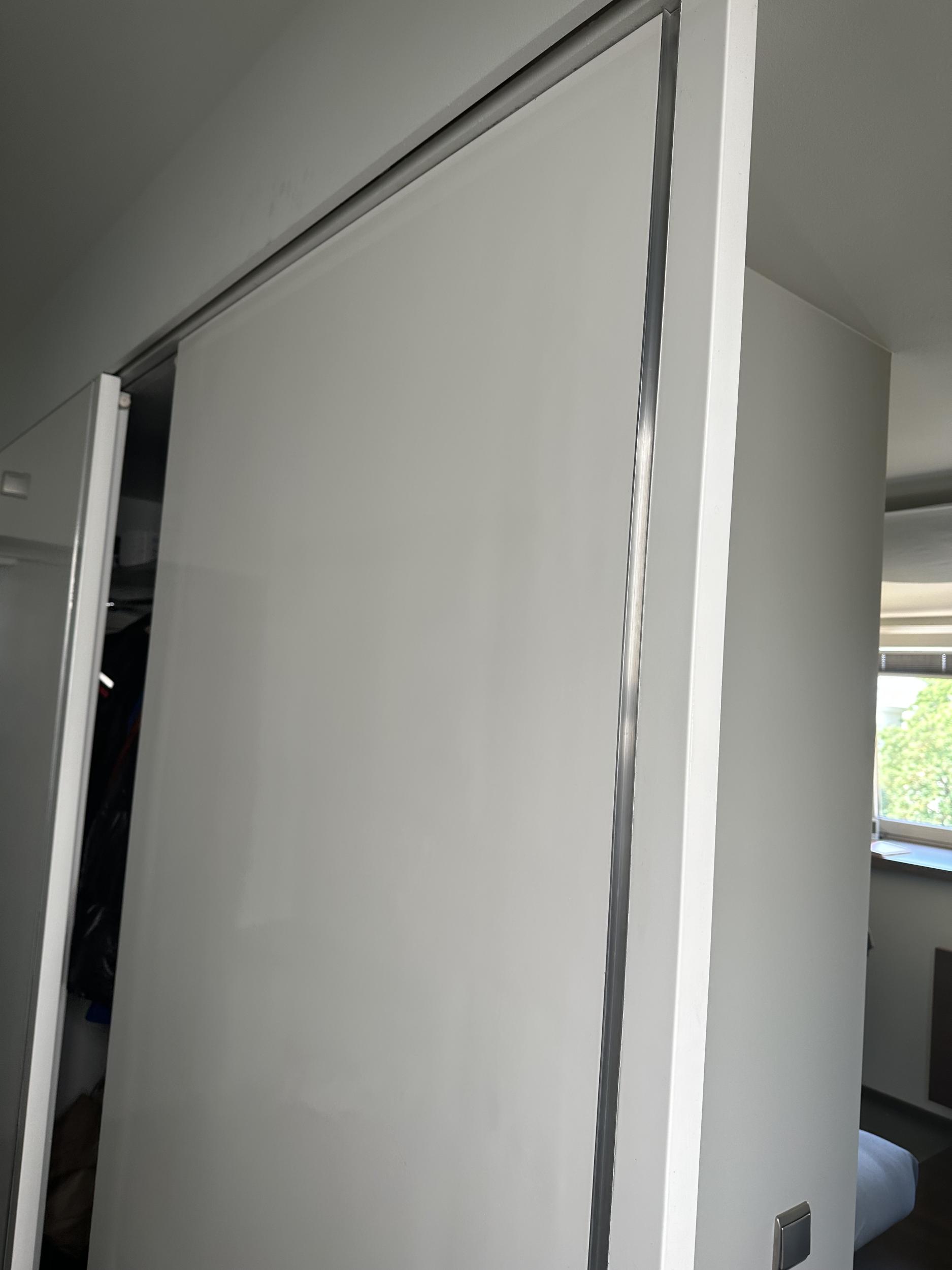 Koridori garderoobi ühe liugukse vasakpoolne liugur on kruviühendusest lahti tulnud ning uks liigub vaevaliselt. On näha, et uks on ühest otsast alla kukkunud ning uks liigub osaliselt parketi peal ja kraabib parketti.