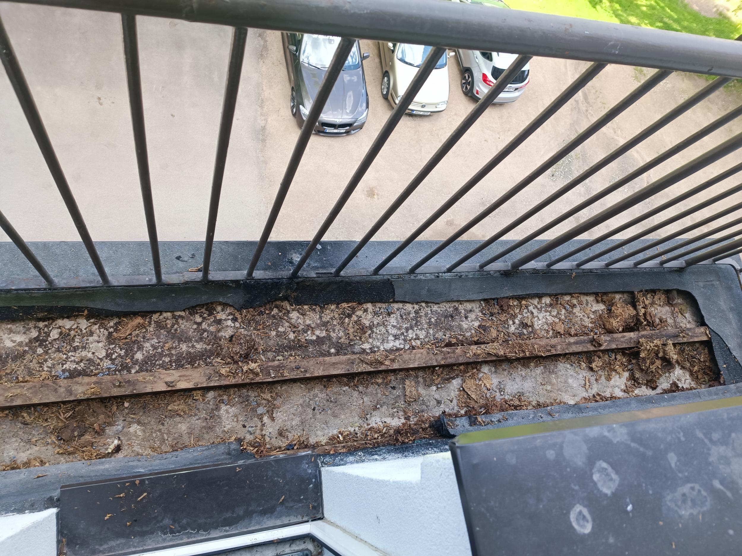 Rõdul on kasutatud ilmastikukindlat tõrvapappi, selle all osb plaat ja siis penoplast. Need on praegu eemaldatud, sest vihmavesi kogunes selle alla. Alles on puitkarkass. Rõdupiirded ei ole eemaldatavad ning rõdu on võrdlemisi kitsas. Asub viimasel, neljandal korrusel. Tartu kesklinn.