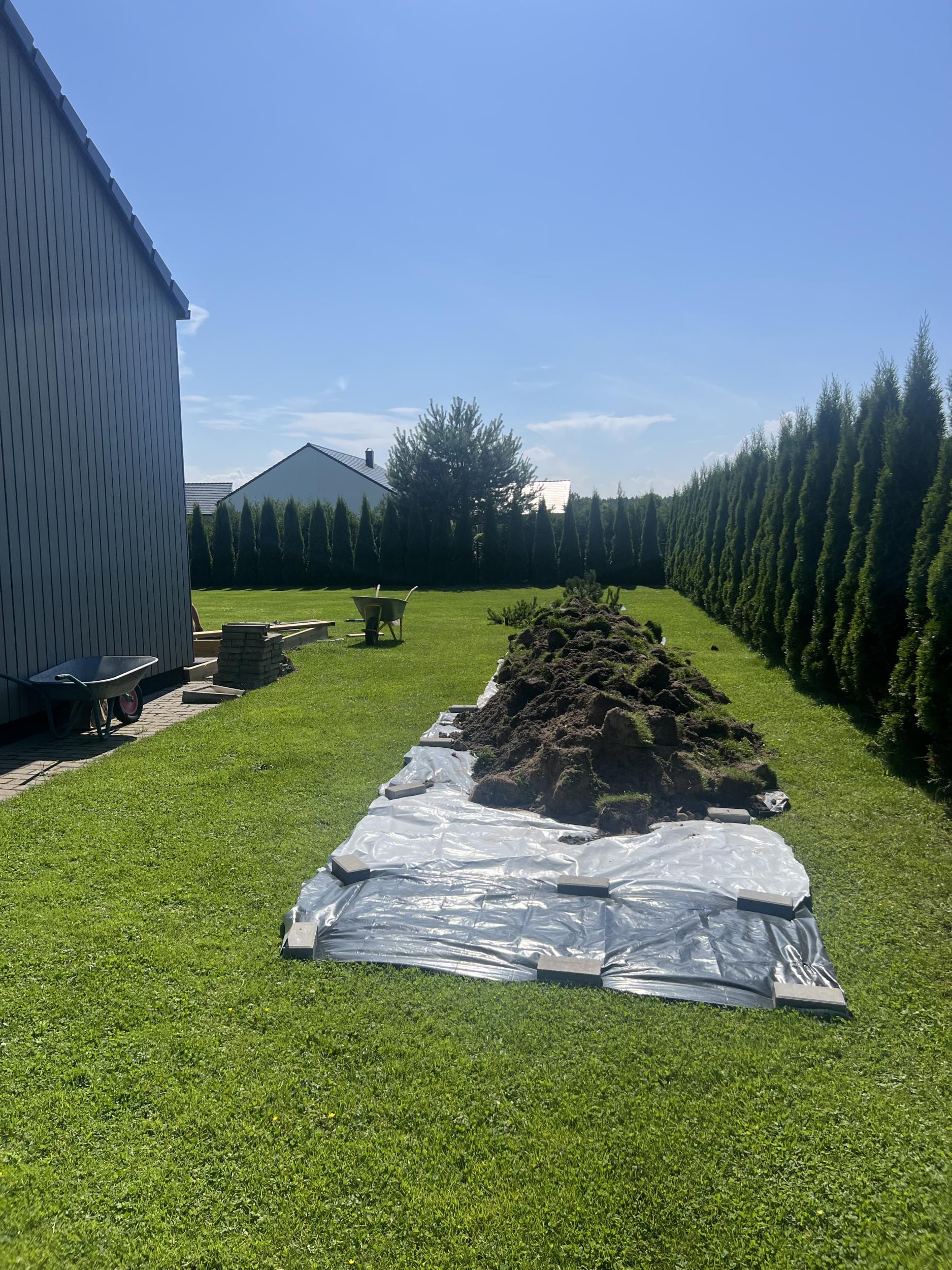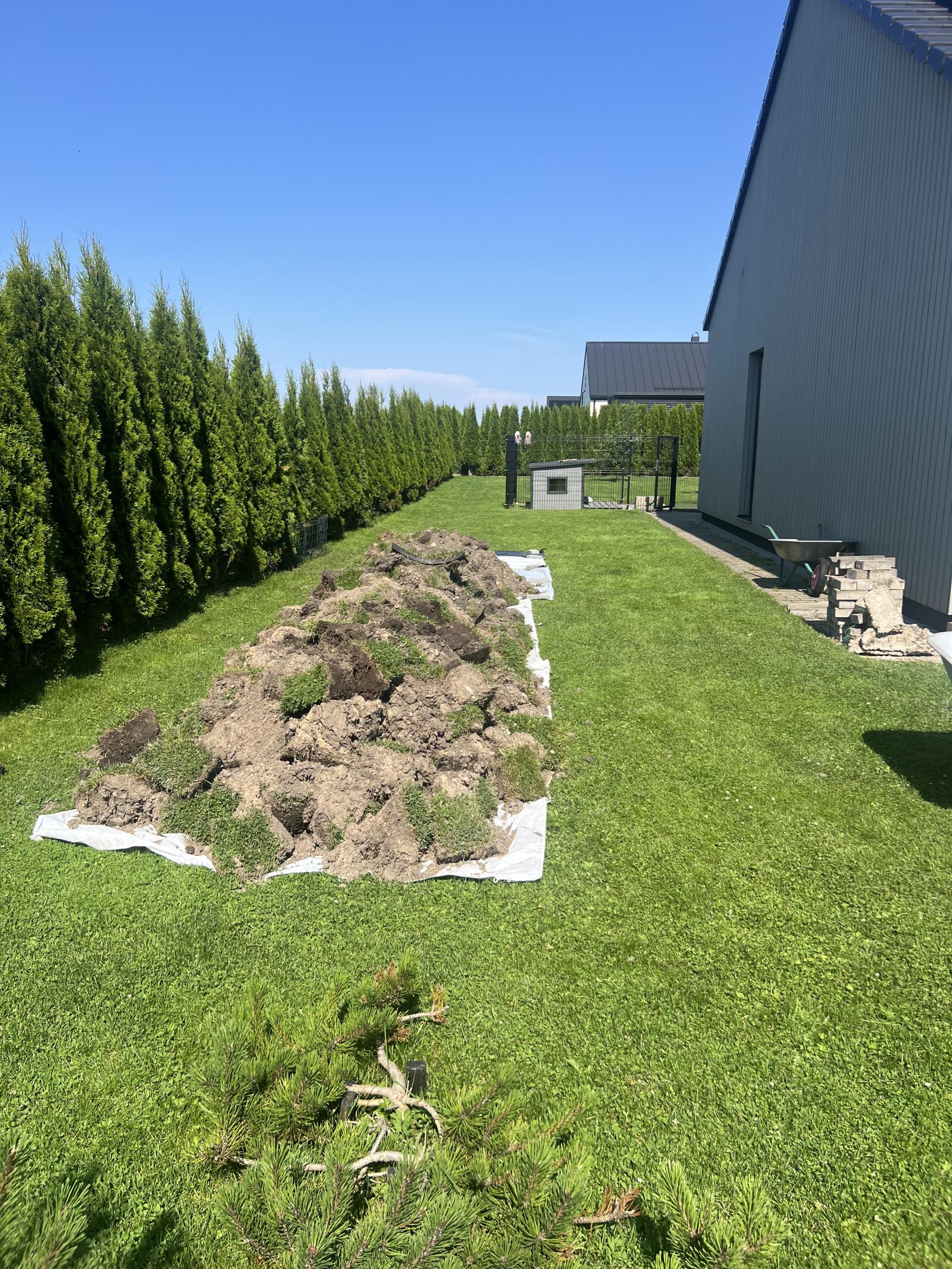 Laadimine avant laaduriga kuivema ilmaga et säästa olemasolevat muru. Multilift kasti sooviks siis paigaldada värava juurde kuhu veame pinnase välja. |