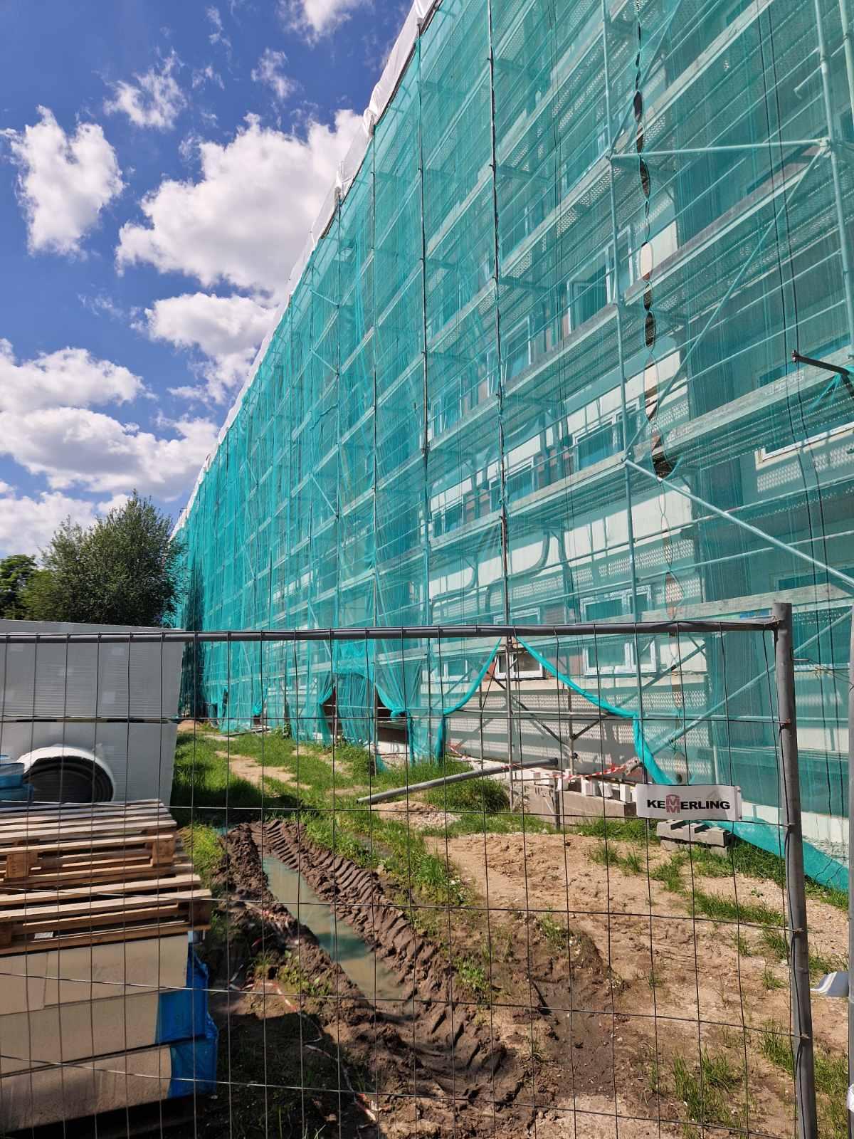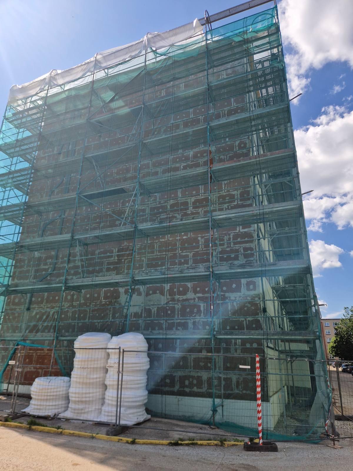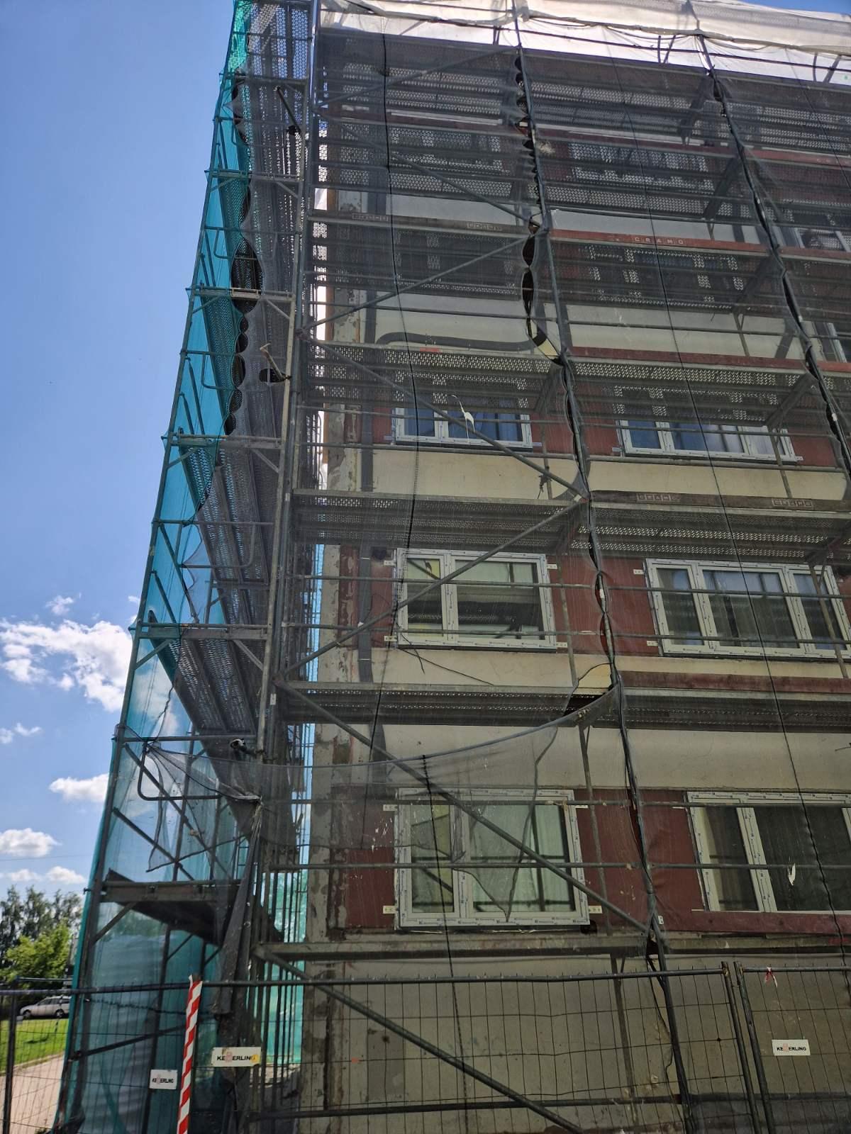 Fassaadi soojustamiseks on vaja 1 või kahte meeskonda, kogumaht on ligikaudu 2500 m2. Hoone on soojustatud villaga. Maja seinte otsad on 200 mm, põhiosa 150 mm.