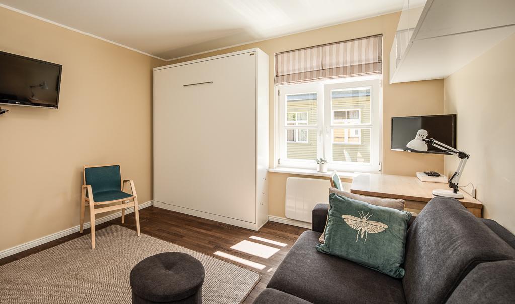 10) aknapalede maalritööd ainult määral, mis puudutab renoveeritud osasid (akende laiused 115 ja 165 cm) vertikaalse üleminekuga uue ja vana värvi vahel, niši seina üle värvimine 7 m2 (2,8 x 2,5)