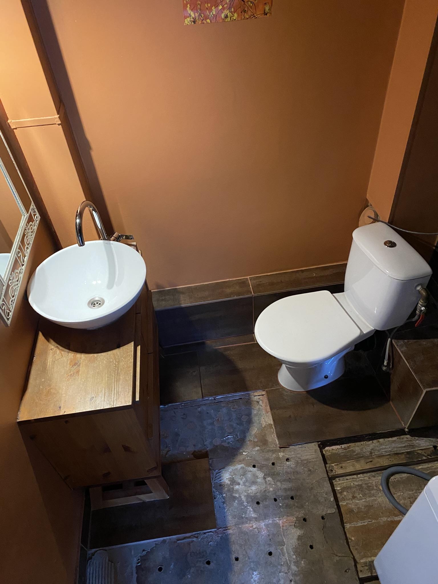 - Vannitoa põranda (sh ühe seinaplaadirea) eemaldustöö, plaatide taga on kipsplaat