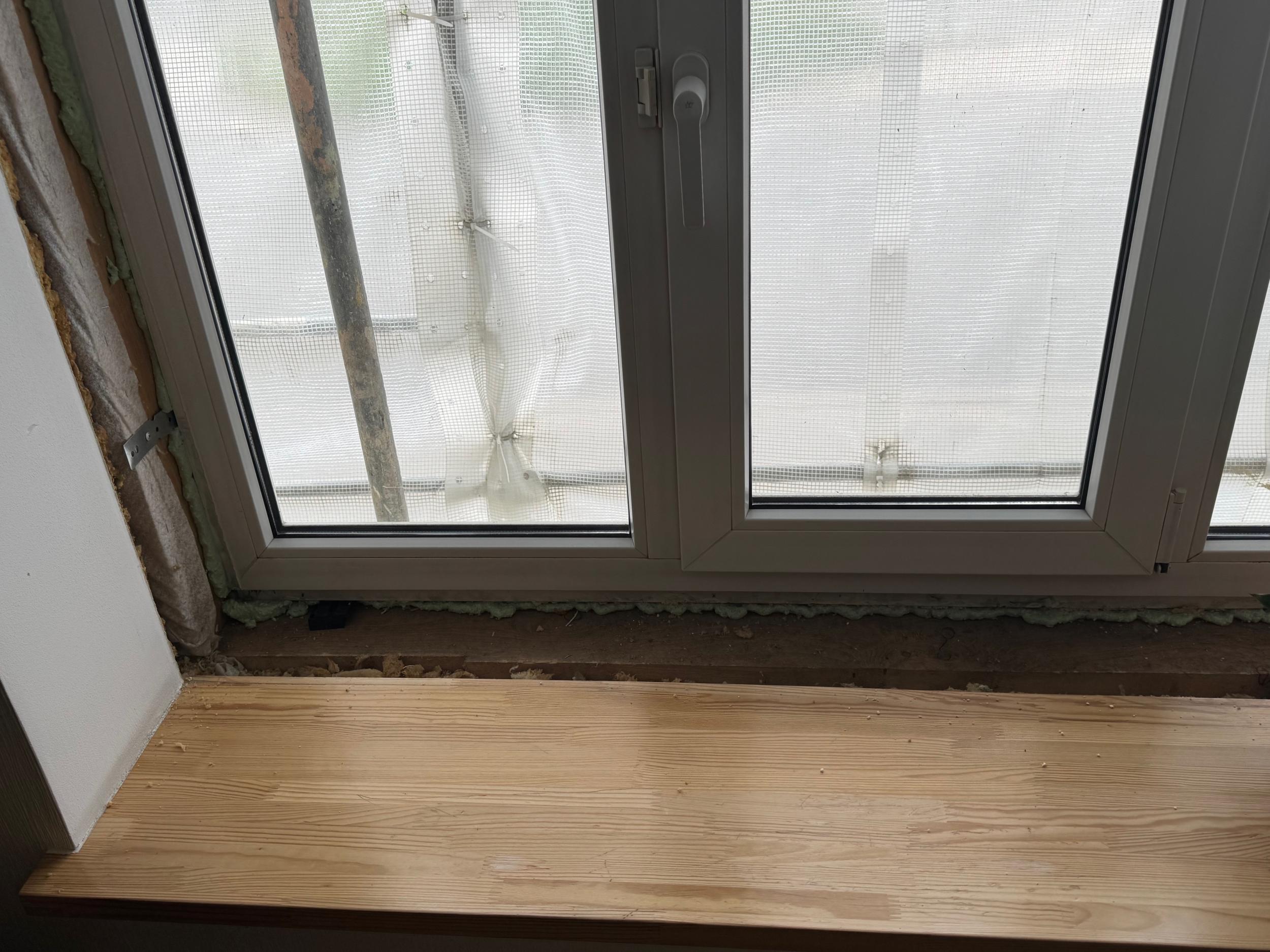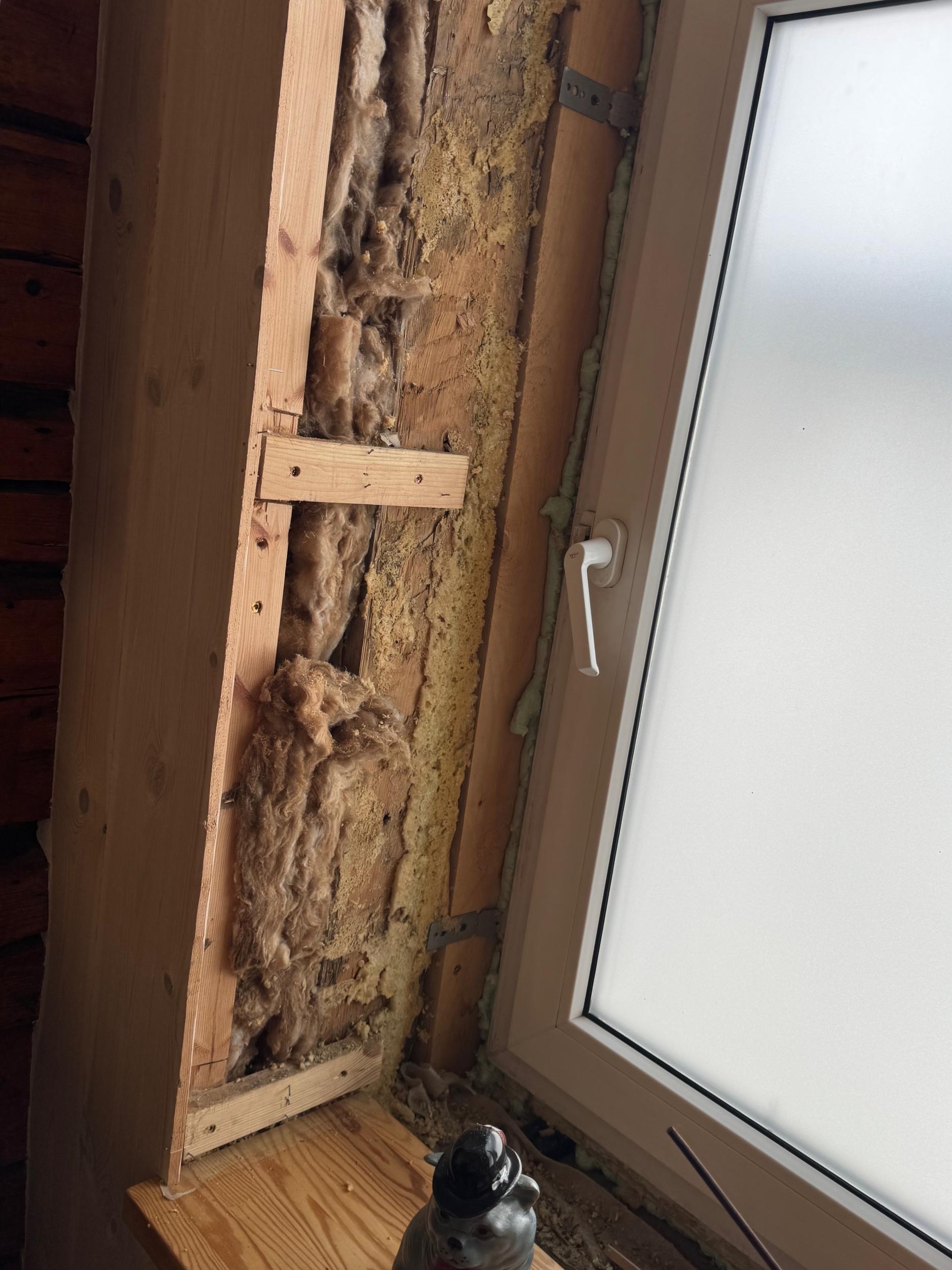 Maja remondi käigus viidi aknad uude soojuskihti. Kokku vajab tegemist neli akent. Kahe köögiakna (väiksemad) põsed olid enne tehtud peitsitud voodrilauaga (köögi enda viimistlus on voodrilauaga). Nendele kahele paneks tagasi voodrilauad. Elutubade kaks akent olid kipsplaadiga ja pahteldatud. Kõik aknalauad on 3cm paksusest puidust. Kui n-ö jätkata ei saa, siis tuleb kõik uuesti teha. Korter ise on korralikult remonditud.